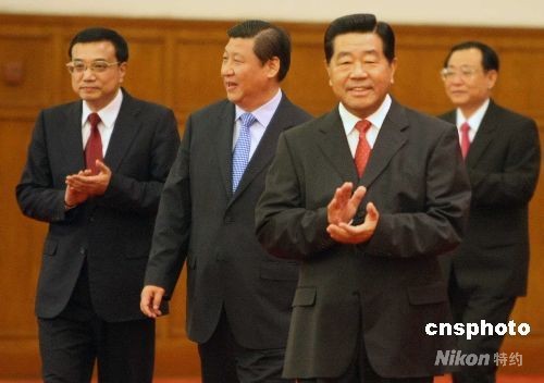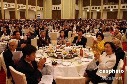 9月28日晚,为庆祝中华人民共和国成立五十九周年,全国政协、中共中央统战部、国务院侨办、国务院港澳办、国务院台办等单位在北京人民大会堂举行盛大宴会,招待3400多位海内外嘉宾。全国政协主席贾庆林、国家副主席习近平、国务院副总理李克强等领导人出席。中新社发 任晨鸣 摄