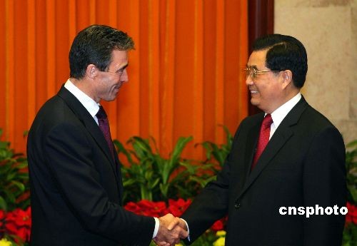 图:胡锦涛会见丹麦首相拉斯穆森