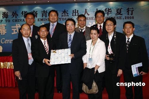 11月4日,“2008年海外华裔青年杰出人士华夏行”活动在北京开幕,来自27个国家和地区的近130位代表与会。国务院侨务办公室副主任许又声在下午的演讲中,向华裔代表介绍了中国侨务工作等内容并回答代表提问。“华夏行”活动是近年来国侨办和中国海外交流协会为在海外各领域崭露头角的华裔青年杰出人士专门策划的一项活动。中新社发 杜洋 摄