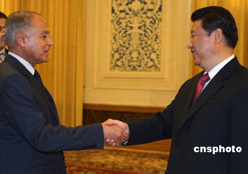 11月6日下午,中国国家副主席习近平在北京人民大会堂会见阿拉伯埃及共和国外交部部长艾哈迈德·阿里·阿布·盖特一行。艾哈迈德·阿里·阿布·盖特外长是应中国外长杨洁篪的邀请,于11月5日至7日访华,并举行两国外交部首轮战略对话。中新社发 任晨鸣 摄