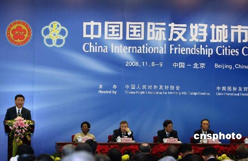 11月8日上午,“中国国际友好城市大会”在北京首都大酒店开幕,中国国家副主席习近平出席并发表讲话。中新社发 任晨鸣 摄
