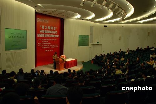 11月7日,北京大学光华管理学院联合德阳市政府在北京大学举办“北大—德阳日”活动、德阳抗震救灾图片展、德阳抗震救灾报告会和德阳灾后重建经济论坛。北京大学、光华管理学院、德阳市政府的领导都莅临此会,众多企事业单位的校友也返回母校参加此次活动。中新社发 杨慧峰 摄