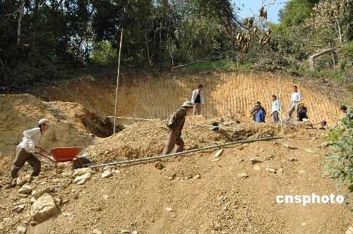 11月20日,广西凭祥友谊关口处,越南工人在新界碑落成处紧张施工。10月,中越联合发表声明称,双方将确保如期实现年内完成陆地边界全线勘界立碑工作。中新社发 王刚 摄
