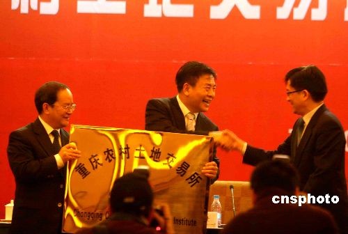 12月4日,酝酿已久的重庆农村土地交易所正式挂牌成立。该交易所由重庆市政府出资成立,系非营利性事业法人机构,实行现代企业管理模式,主要从事地票交易。所谓地票,指包括农村宅基地及其附属设施用地、乡镇企业用地、农村公共设施和农村公益事业用地等农村集体建设用地,经过复垦并经土地管理部门严格验收后产生的指标。中新社发 郭晋嘉 摄