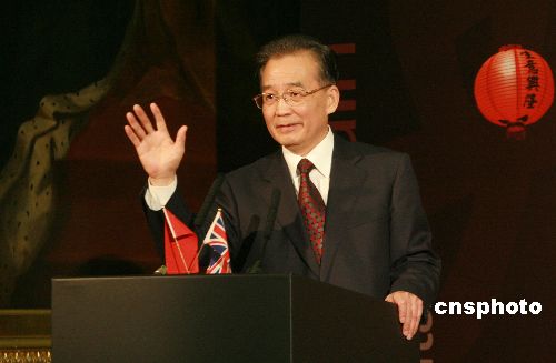 伦敦当地时间2月2日上午,访英的中国总理温家宝和英国首相布朗在伦敦共同出席中英工商峰会。图为温家宝总理在峰会上发表演讲。中国总理表示:应对全球金融危机需要“信心、合作和责任”。中新社发 李鹏 摄