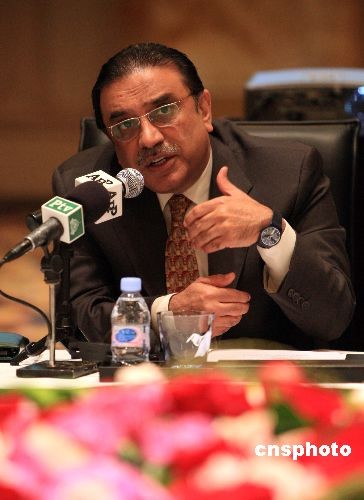 2月23日,正在访华的巴基斯坦总统扎尔达里在上海与中国金融界人士座谈。参加座谈的包括中国工商银行、交通银行、中国银行、中国建设银行上海分支机构相关负责人,以及上海银行、上海证券交易所、上海浦东发展银行等负责人。中新社发 潘索菲 摄