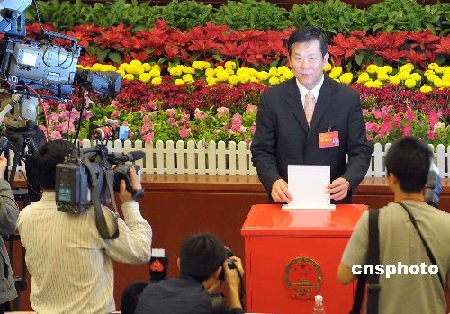 2月27日上午,深圳市第四届人民代表大会第六次会议闭幕,338名人大代表选举和表决通过两名人大副主任和一名副市长人选。及聚声以332票、陈治华以334票分别当选市人大常委会副主任。唐杰(图中)以335票当选副市长。1955年出生的唐杰曾担任深圳市政府秘书长、市人大常委会副主任等职。中新社发 陈文 摄