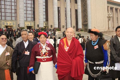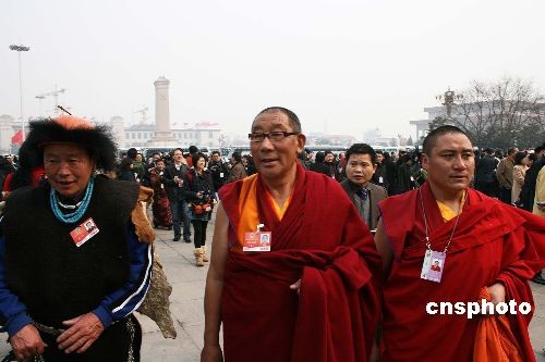2009年3月3日,全国政协十一届二次会议在北京人民大会堂开幕,来自西藏的委员步入会场。中新社发 金立冬 摄