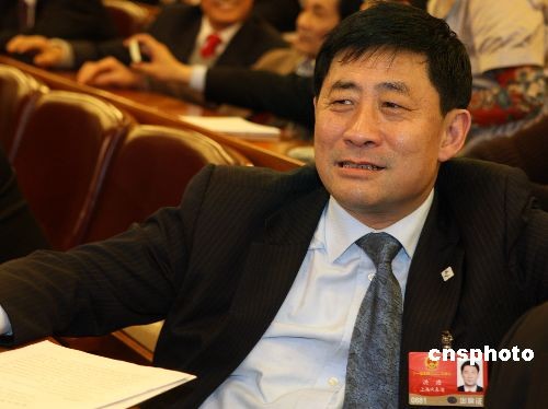 3月10日下午,第十一届全国人民代表大会第二次会议在北京人民大会堂举行第三次全体会议,听取最高人民法院院长王胜俊、最高人民检察院检察长曹建明作工作报告。全国人大代表、上海市政府副秘书长、上海世博会事务协调局局长洪浩出席大会。中新社发 任晨鸣 摄