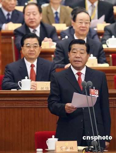 3月12日,全国政协十一届二次会议在北京人民大会堂闭幕,全国政协主席贾庆林主持会议。中新社发 盛佳鹏 摄