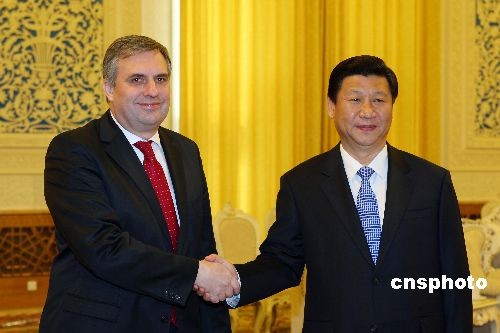 3月23日,中国国家副主席习近平在北京人民大会堂会见保加利亚共和国副总理兼外交部长伊瓦伊洛·卡尔芬。中新社发 盛佳鹏 摄