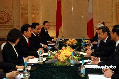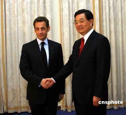 当地时间4月1日晚,出席G20伦敦峰会的中国国家主席胡锦涛在下榻酒店会晤法国总统萨科齐,希望双方共同开创中法关系的新局面。