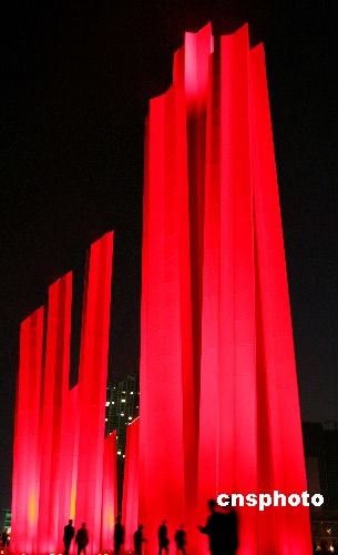 4月22日晚,南京渡江胜利纪念馆新馆广场上的“千帆竞渡”群雕亮灯,吸引众多南京市民前往观赏。据介绍,南京渡江胜利纪念馆新馆广场上的“千帆竞渡”群雕,一共有49根钢柱,最高的一根高达49.423米,寓意“1949年4月23日南京解放日”,49根钢柱寓意1949年渡江胜利。中新社发 钟山 摄