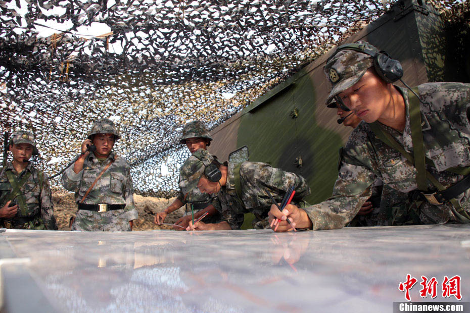 担负“前卫—2010”陆军防空部队“单元合成”演练任务的驻济某防空旅到达演习预定地域后,不顾长途行军的疲劳,迅速投入到演习任务的各项演练中,并对前期的战术演练效果反复检验和完善,对某新型指挥系统进行联网预演,为演习的顺利进行做好了一切准备。指挥所演练。贾愚 王侃 摄