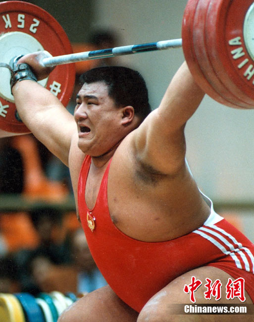 中国大力士才力获男子举重一百一十公斤以上级的金牌。中新社记者 任晨鸣 摄
