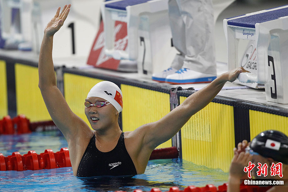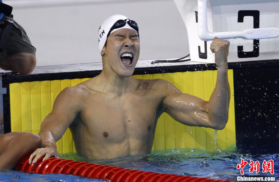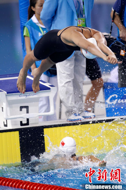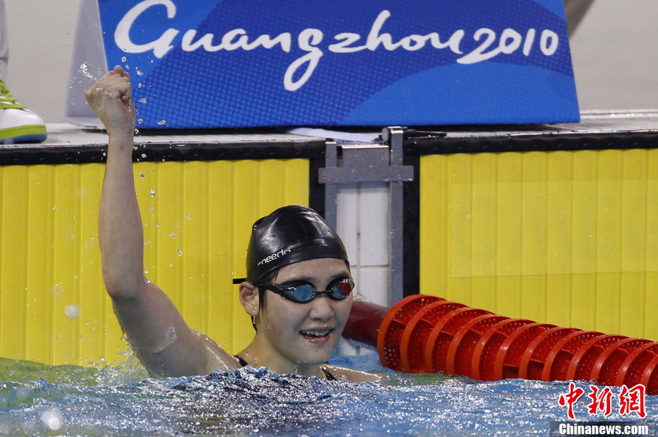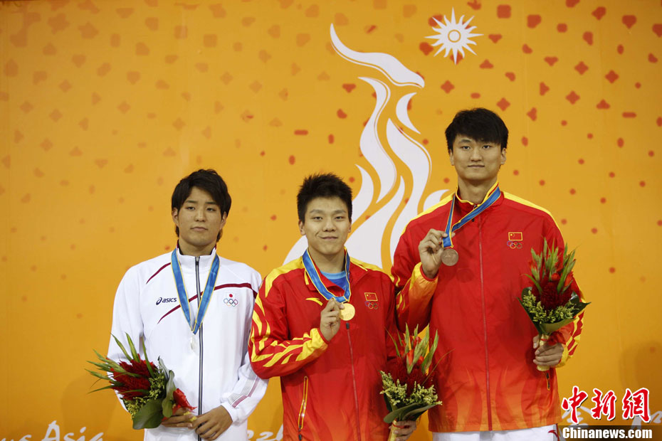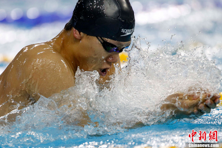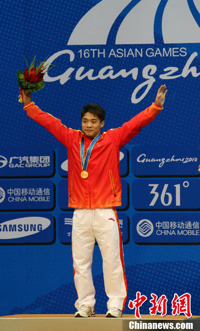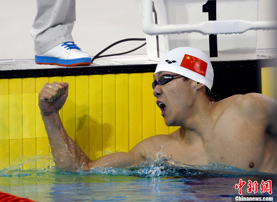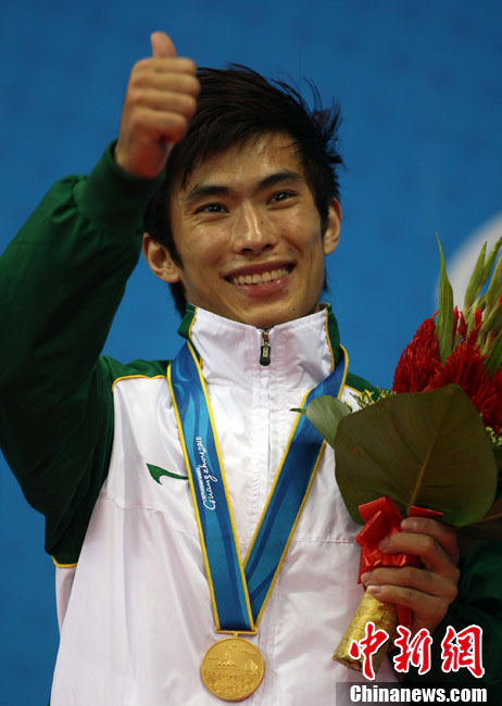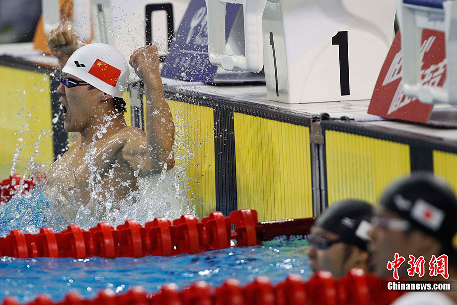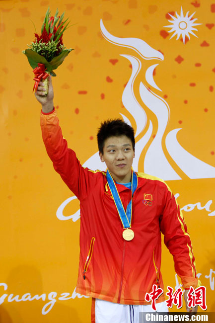 11月14日,中国谢智获得广州亚运会男子50米蛙泳冠军。中新社记者 盛佳鹏 摄