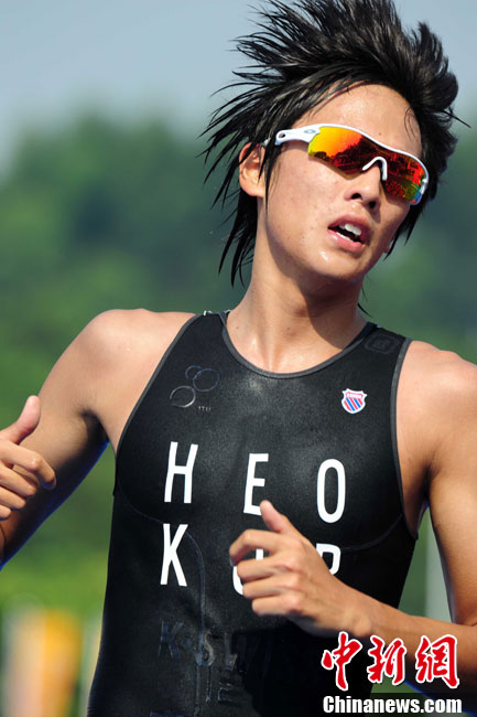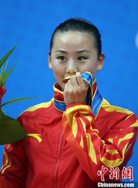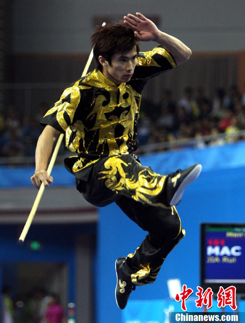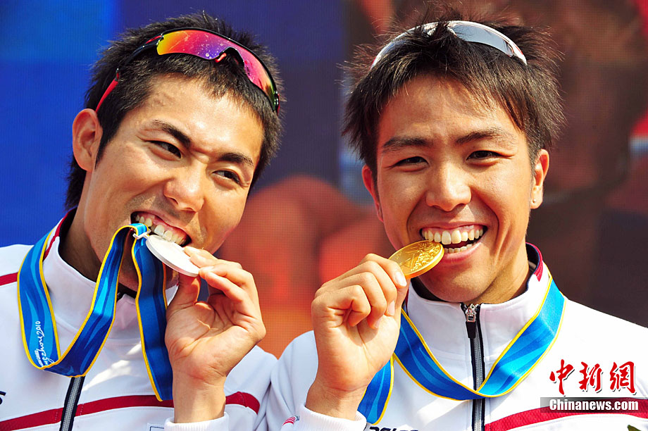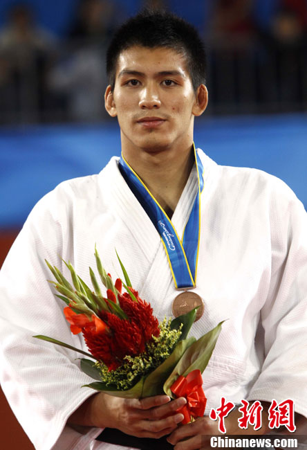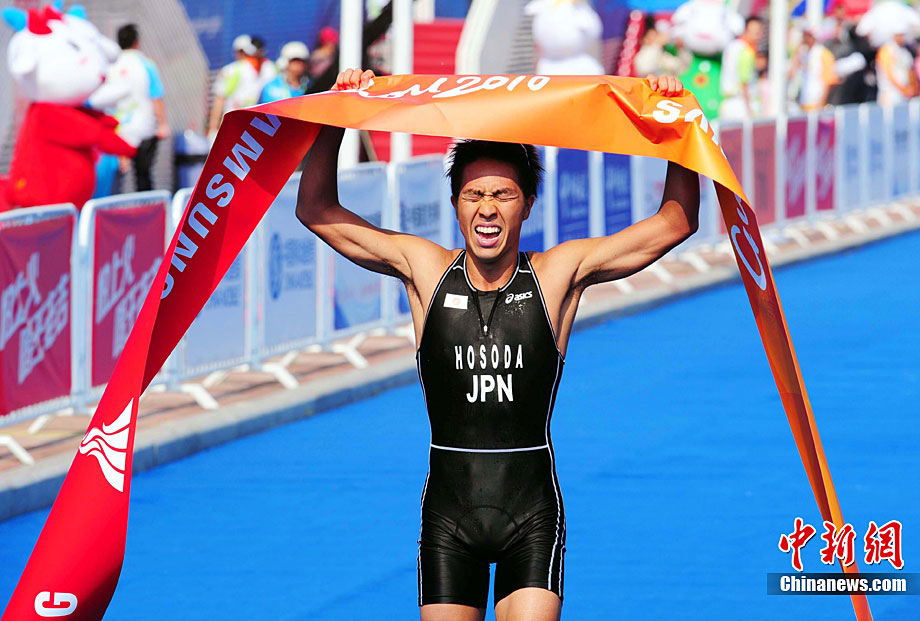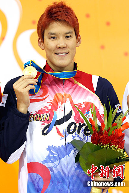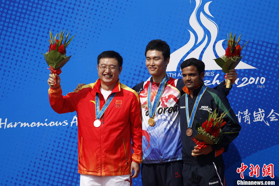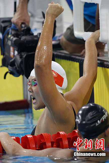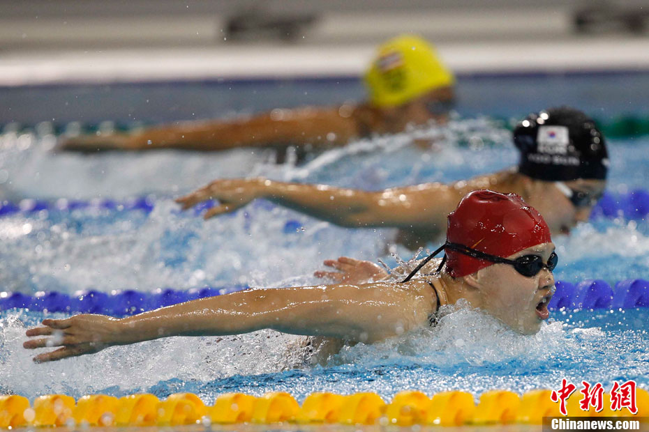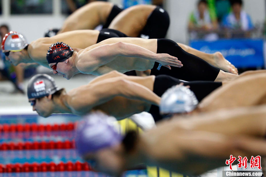 11月14日,中国谢智获得广州亚运会男子50米蛙泳冠军。中新社记者 盛佳鹏 摄