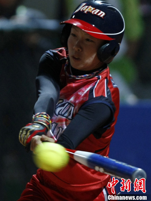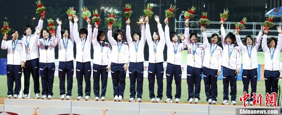 11月26日晚,在广州天河棒垒球场举行的广州亚运会垒球女子决赛中,日本队以2-0战胜中国队,夺得冠军。中新社记者 张茵 摄