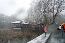 入冬第一场雪飘洒南昌 行人雪中艰难走