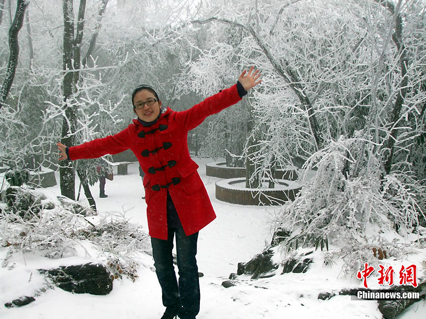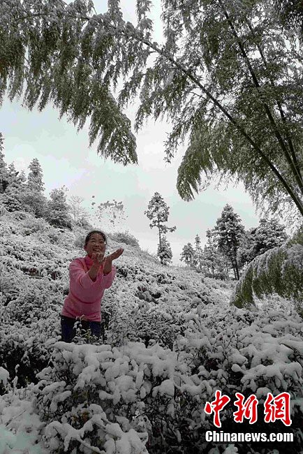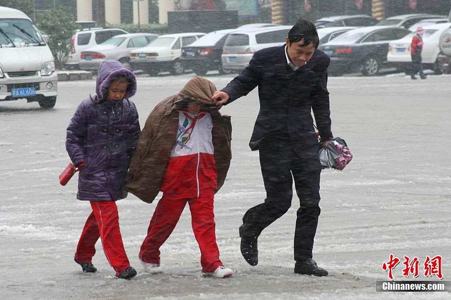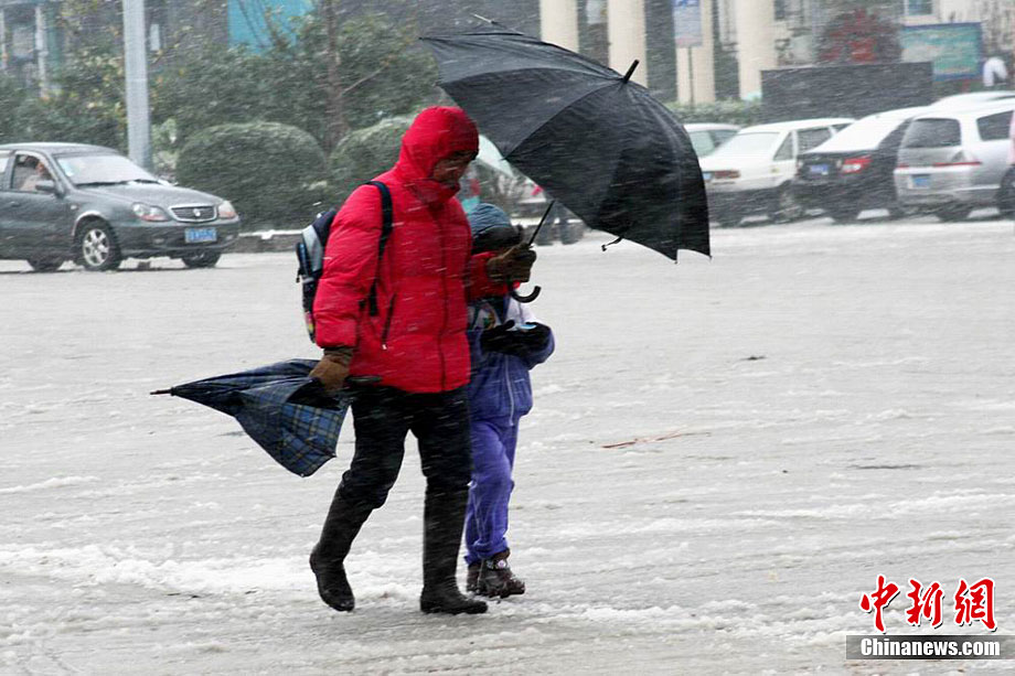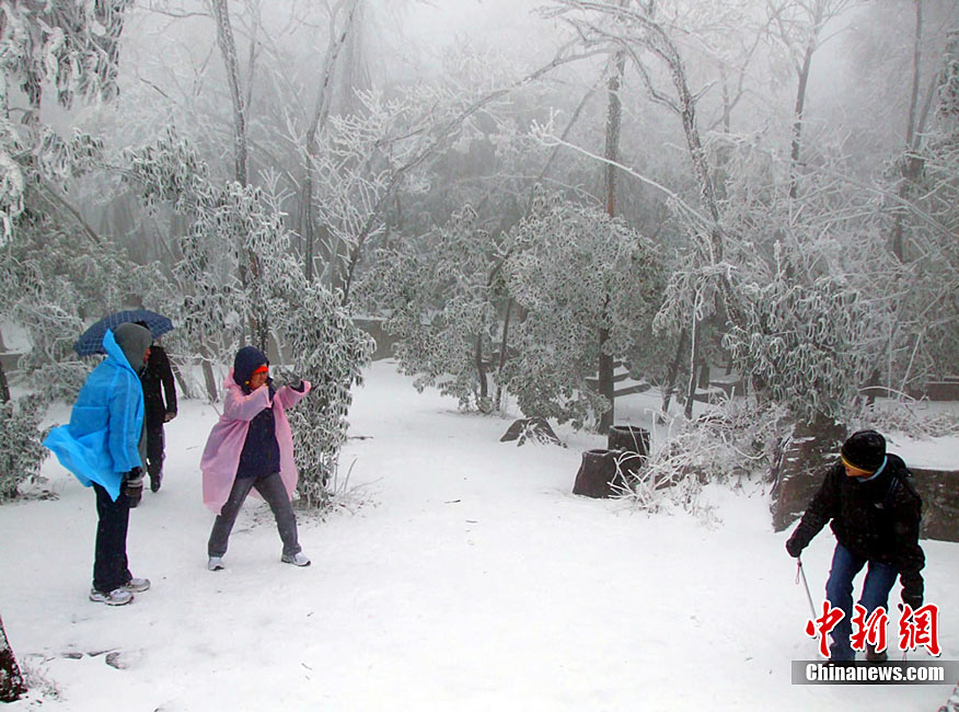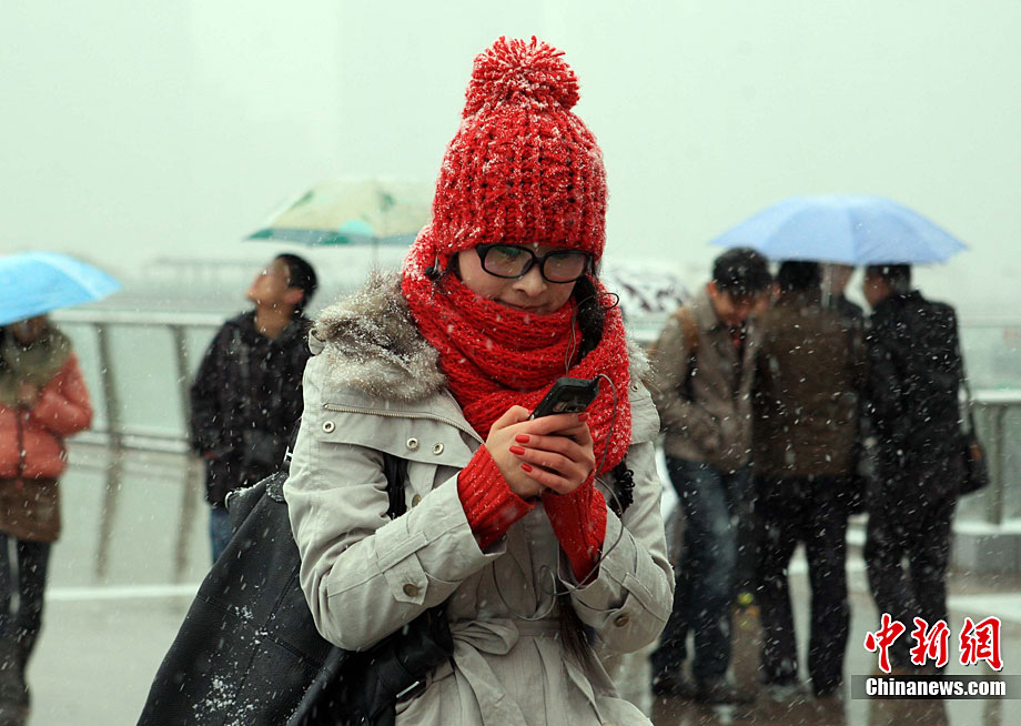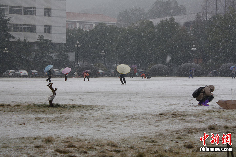 12月15日上午,长沙迎来了入冬以来的第一场雪,不少市民纷纷走出屋内欣赏雪景。 湖南省气象部门预报称,15日湘中偏南局地有大到暴雪。王轩 汪顺 摄