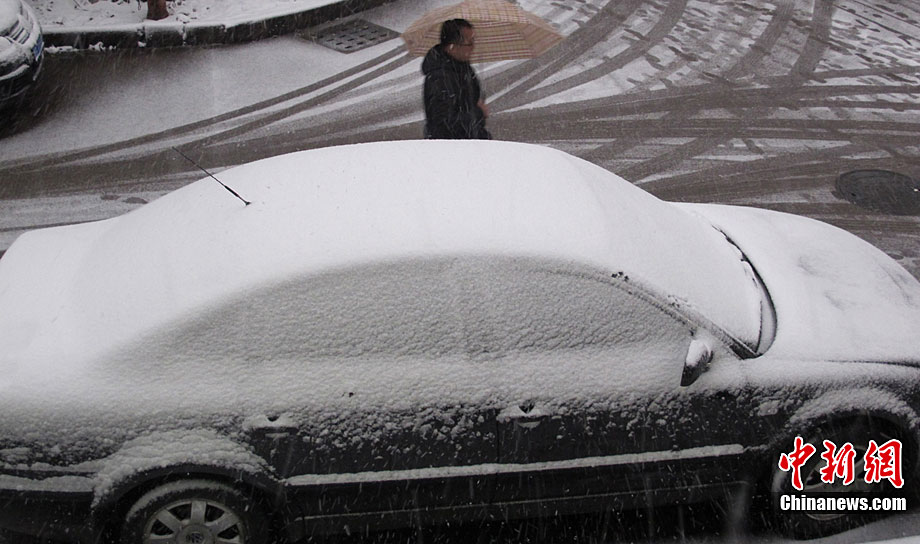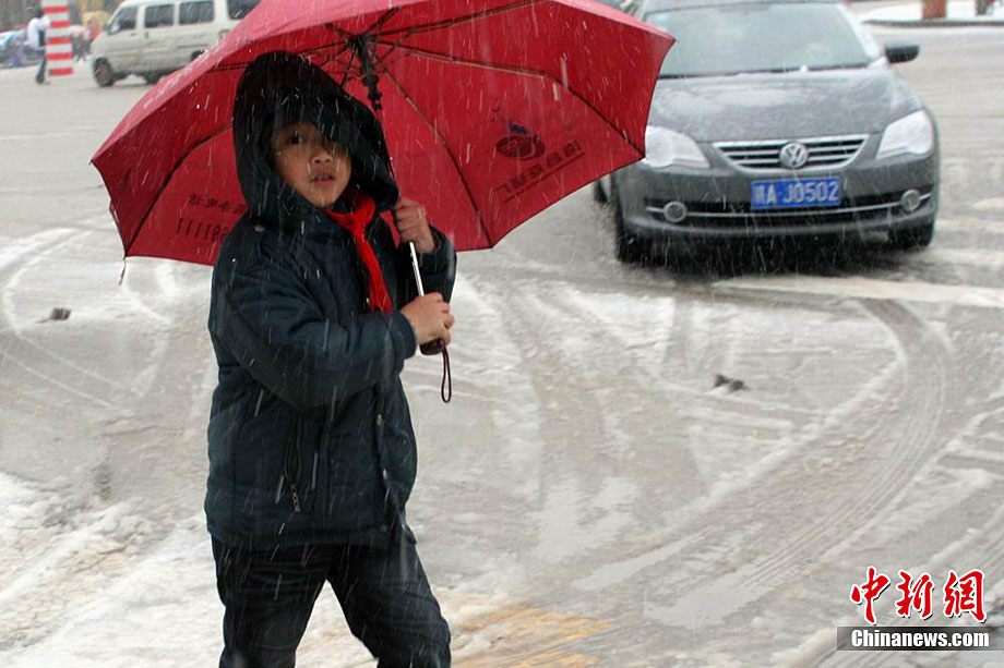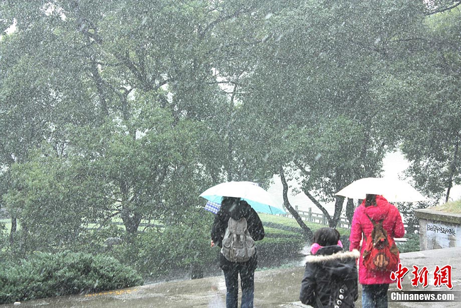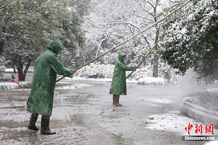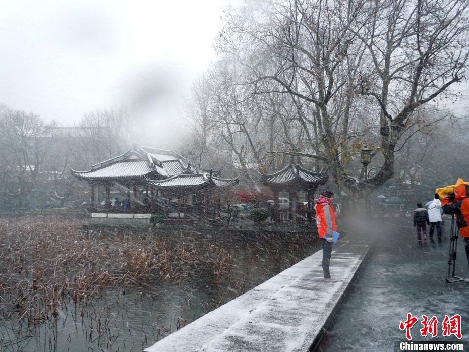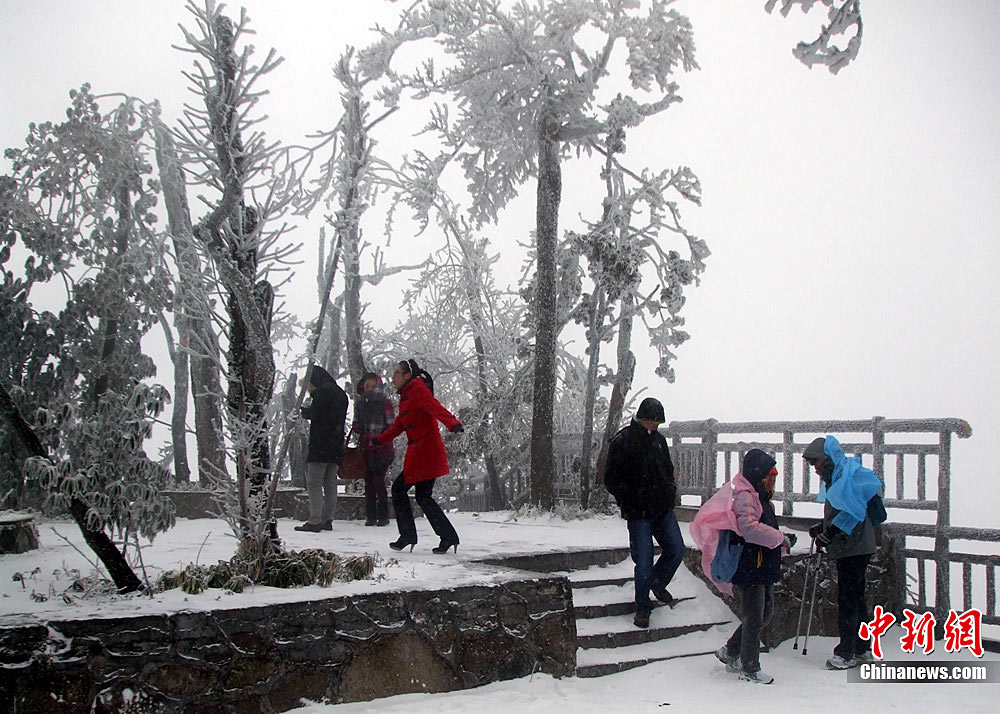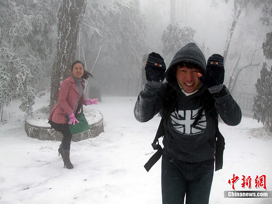 12月15日上午,长沙迎来了入冬以来的第一场雪,不少市民纷纷走出屋内欣赏雪景。 湖南省气象部门预报称,15日湘中偏南局地有大到暴雪。王轩 汪顺 摄