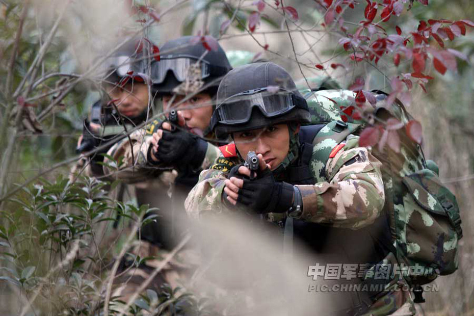 新年伊始,武警四川总队一支队把特战队员拉到丛林复杂地域进行耐寒和战术协同演练,向新年度军事训练给力,极大地激发了官兵练兵热情。图片来源:中国军网