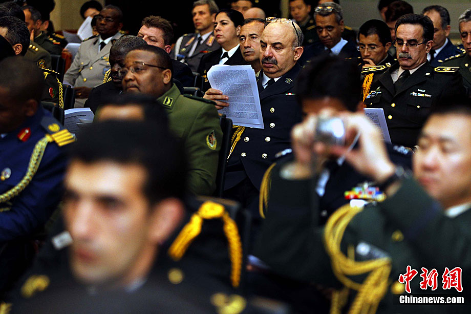 全国“两会”在北京召开期间,中华人民共和国国防部外事办公室,3月11日下午邀请70多个国家的120余名驻华武官,在中华人民共和国国防部外事办公室成立60年之际,共同展望中国军队与各国军队交流合作的美好前景。目前中国已与150多个国家开展了军事交往,在军事理论、作战指挥、训练教学、装备技术、等多领域展开战略、战术、技术多层次的交流,形成了全方位、多层次、宽领域的对外军事交往格局。中新社发 宋吉河 摄