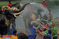 泰国宋干节大象"泼水"