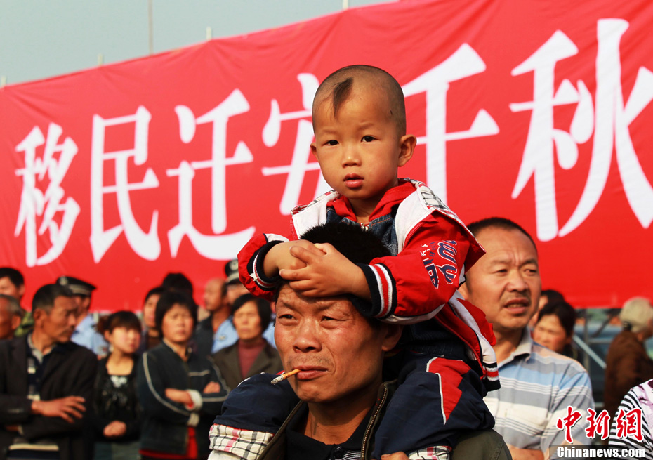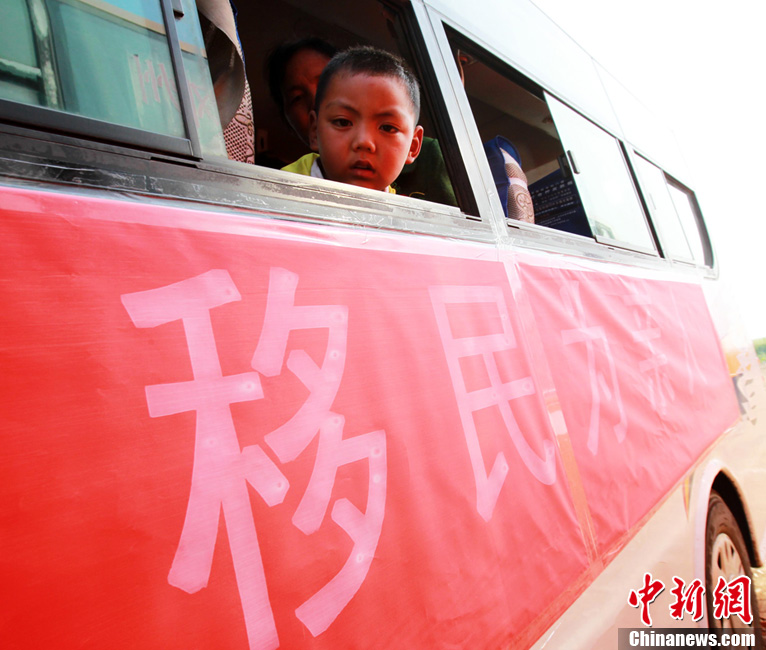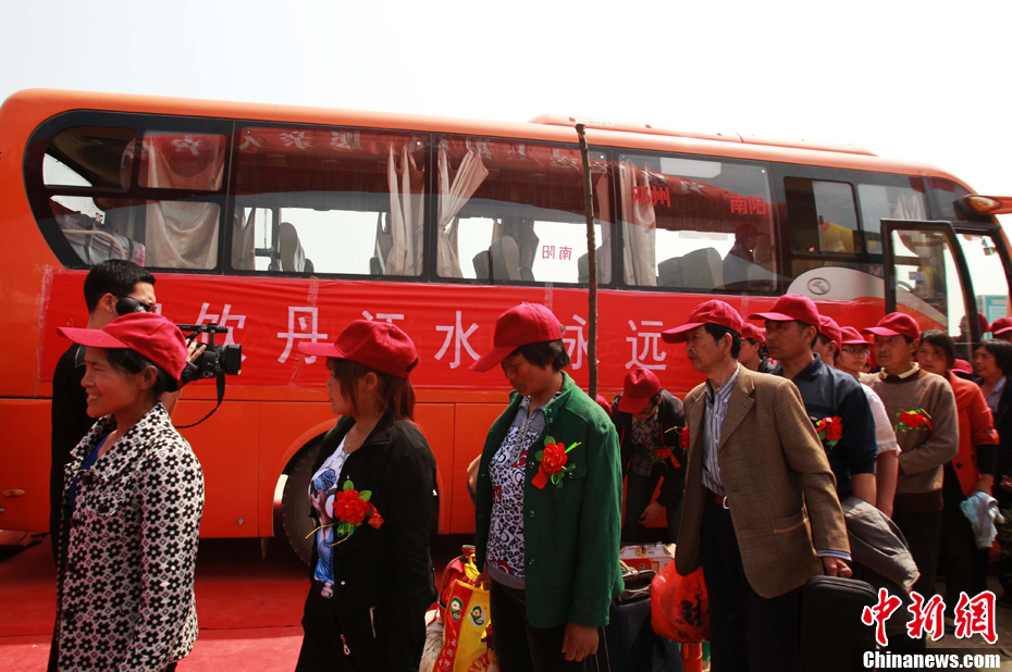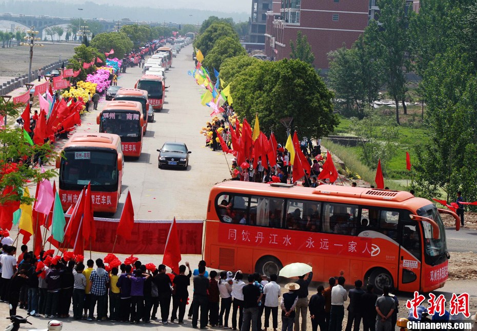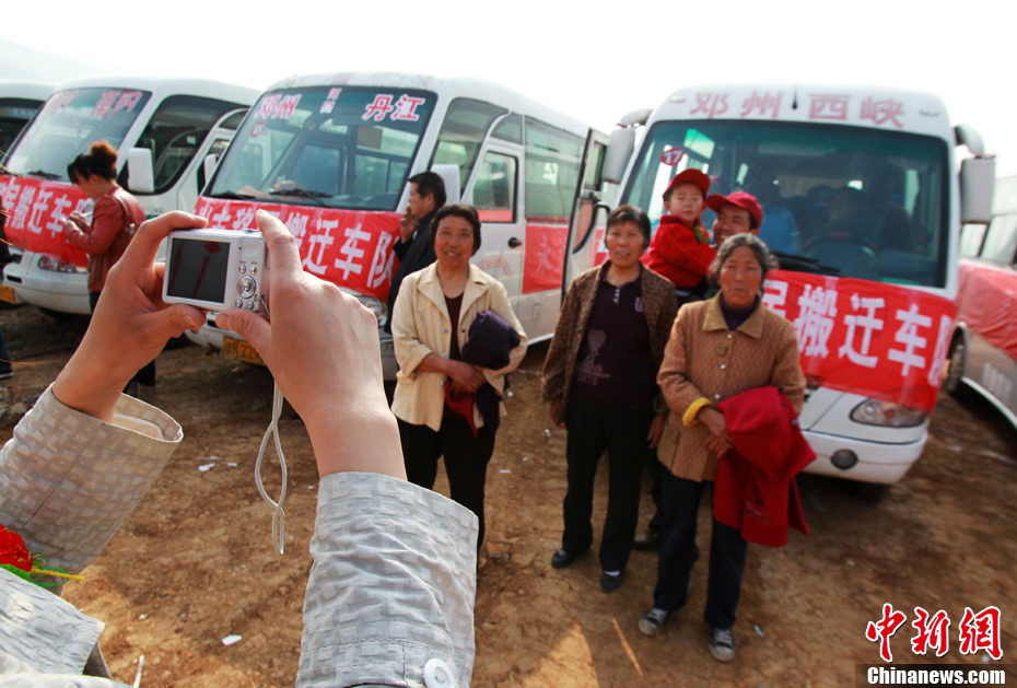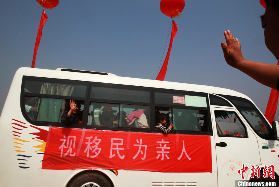 5月5日,南水北调中线渠首所在地河南南阳淅川县西岭村147户693名移民登上了开往邓州市腰店镇四龙安置地移民新村客车,告别故土,迈向新生活。当日,西岭村移民搬迁工作的正式启动,标志着河南省南水北调丹江口库区第二批移民大搬迁全面启动。中新社发 王中举 摄