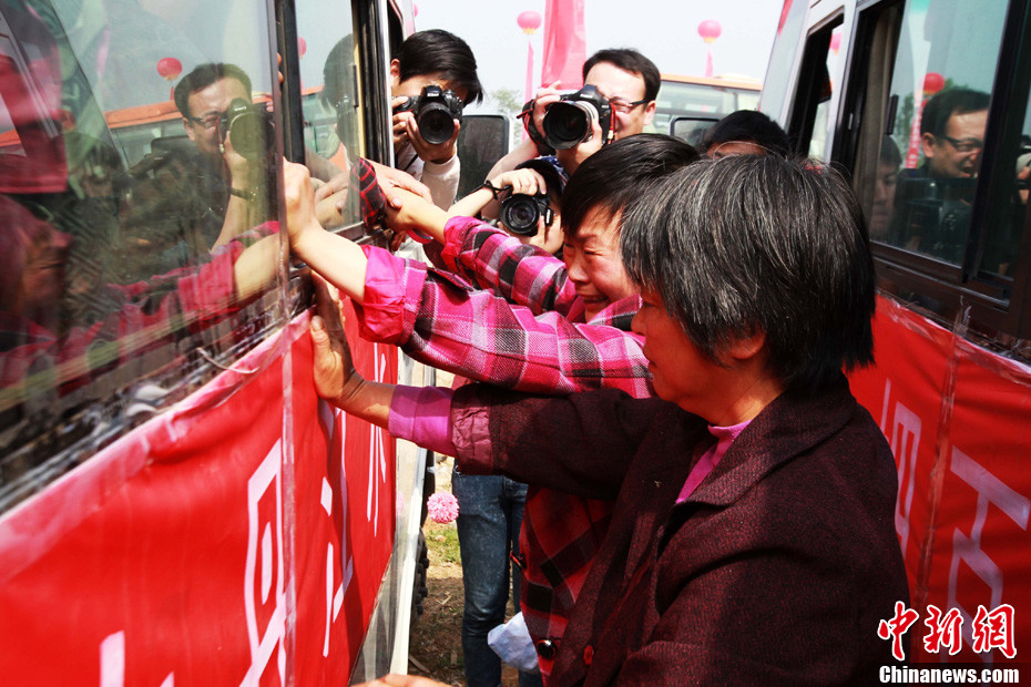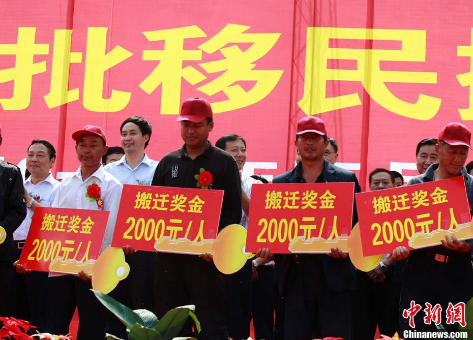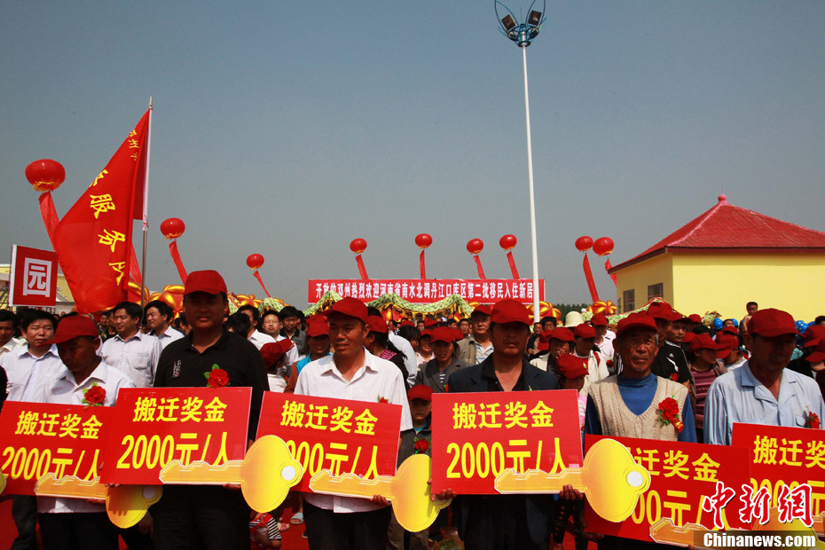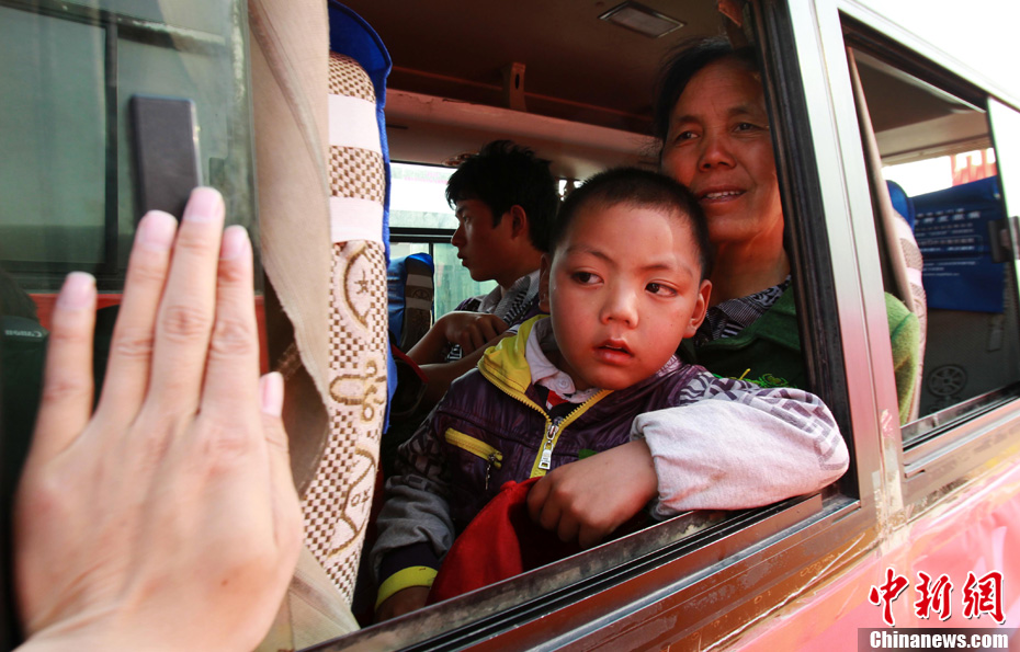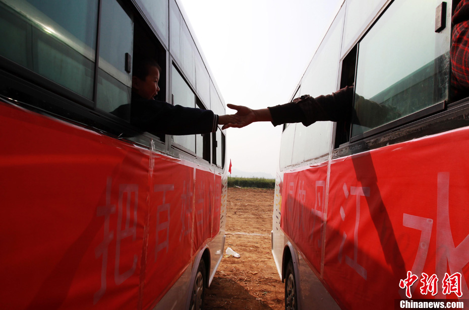 5月5日,南水北调中线渠首所在地河南南阳淅川县西岭村147户693名移民登上了开往邓州市腰店镇四龙安置地移民新村客车,告别故土,迈向新生活。当日,西岭村移民搬迁工作的正式启动,标志着河南省南水北调丹江口库区第二批移民大搬迁全面启动。中新社发 王中举 摄