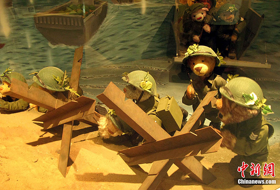 韩国泰迪熊博物馆位于韩国济州岛,面积1万3530平方米,陈列了1200只泰迪熊。位于一楼的历史馆里,再现了20世纪人类历史上的11件重大事件:包括福特汽车出现、铁达尼沉没、第二次世界大战、人类登陆月球、香港回归等,每个场景都会有当时流行的玩具熊登场。中新社发 任海霞 摄