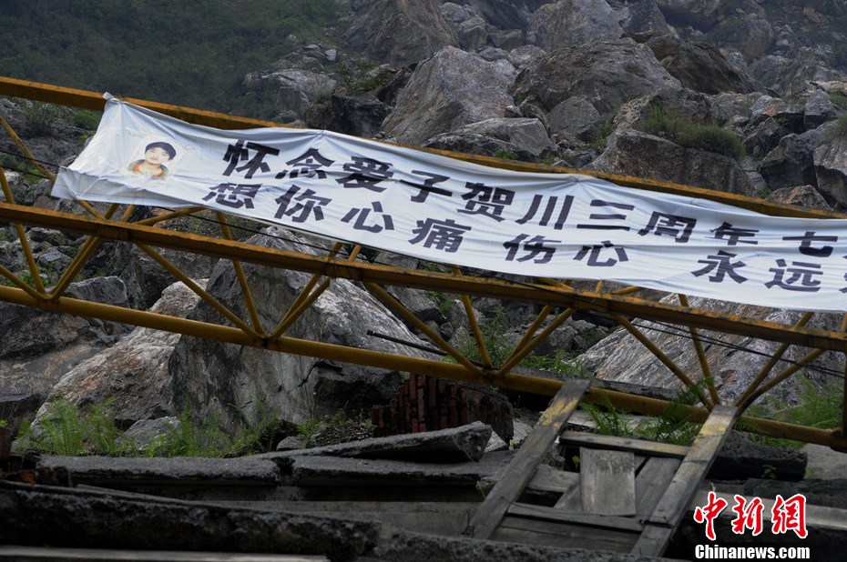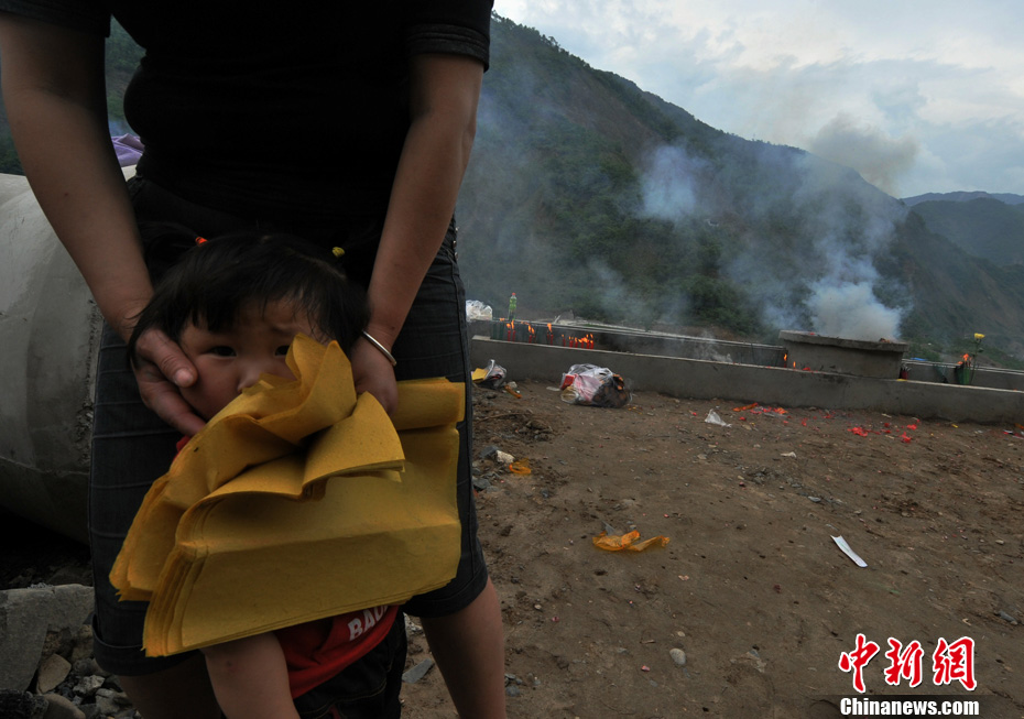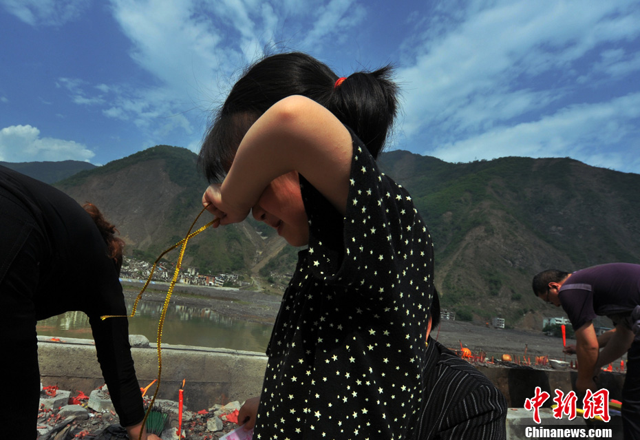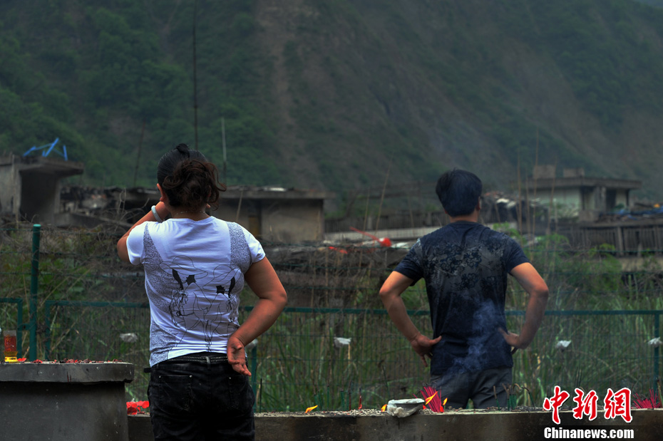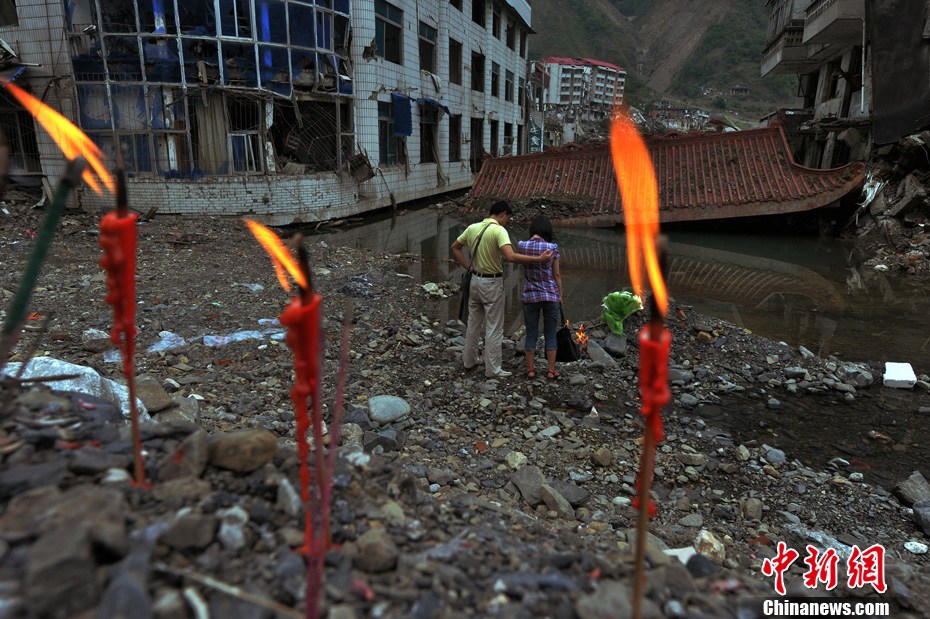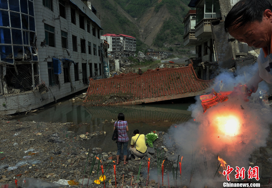 5月11日是“5.12汶川大地震”三周年的前一天,四川省北川县的大地震幸存者与遇难者的亲属们,重返昔日遭受毁城的老县城。一位姑娘面对江河对岸的家园废墟焚香,沉痛怀念铭心刻骨的巨大悲剧人物——因为三年前的今天,她的亲人们都还是活生生的人。贾国荣 摄