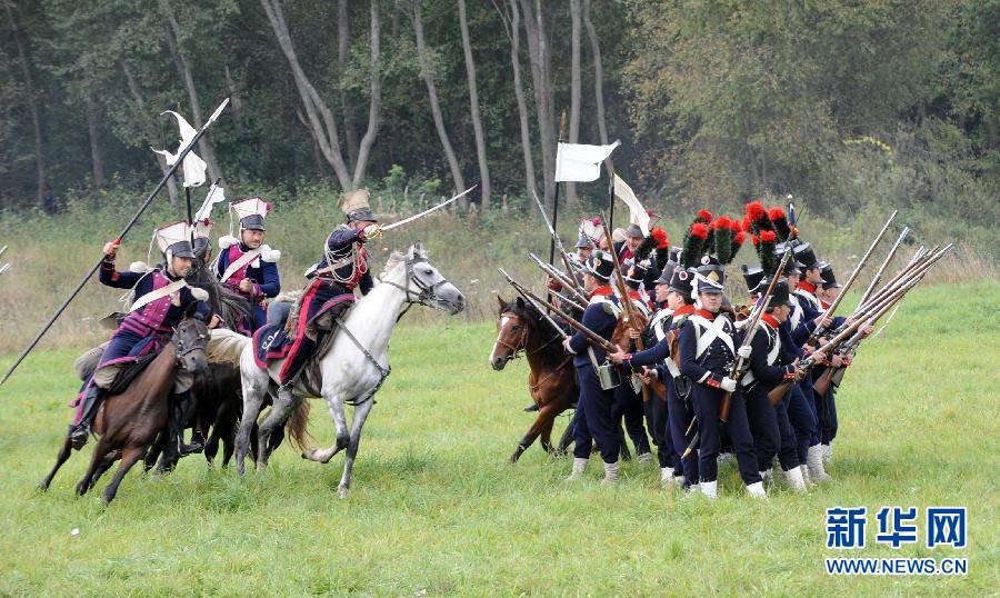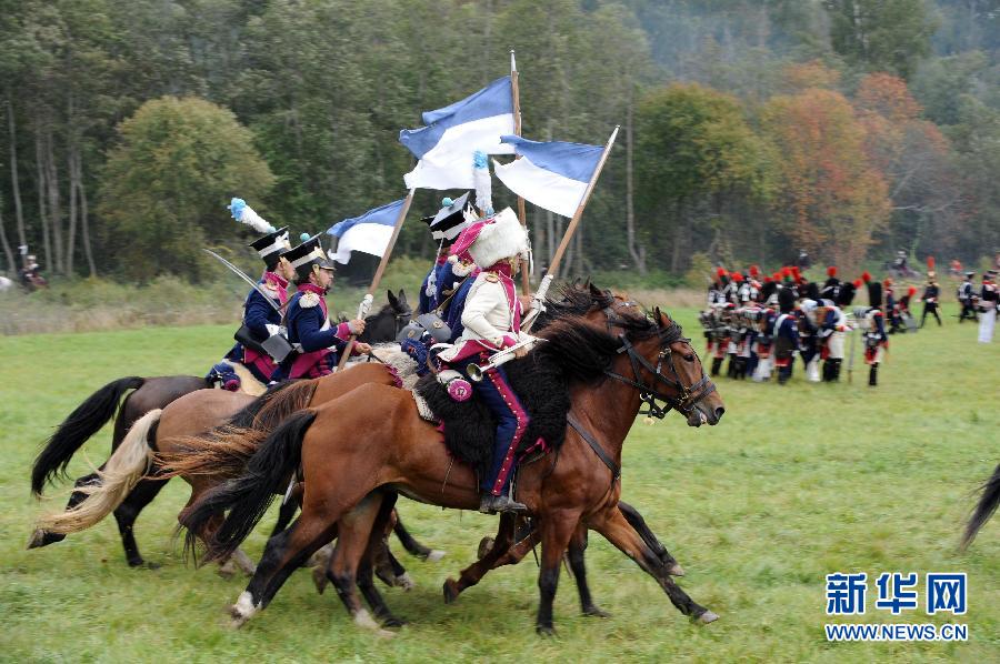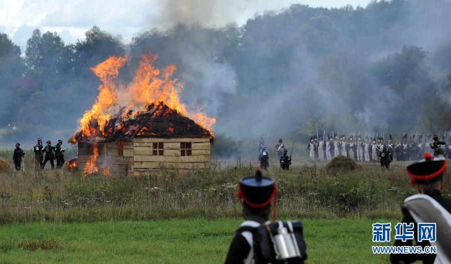 9月4日,在俄罗斯首都莫斯科附近博罗季诺会战旧址,参与者重现当年博罗季诺会战的场面。 1812年9月,拿破仑率13万法军向莫斯科挺进,在博罗季诺村遭到库图佐夫率领的12万俄军的顽强抵抗,双方死伤惨重。此次会战虽未能决出胜负,但为俄军消耗法军和转入反攻创造了条件,成为世界战争史上的著名战役之一。李勇 摄 图片来源:新华网
