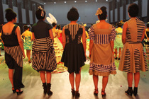 9月9日下午,在河南省女子监狱,女犯们身着自己设计制作的斑马条囚服标志布在舞台上进行服装走秀,以特有的服饰秀出自己美丽的一面。当日,河南省女子监狱举行“盛世中秋”文艺晚会。晚会集萃了艺术节歌舞类、戏曲类、语言类、时装类的优秀节目。河南省女子监狱现押女犯2800余人,女犯主要从事服装加工劳动改造。中新社发 王中举 摄