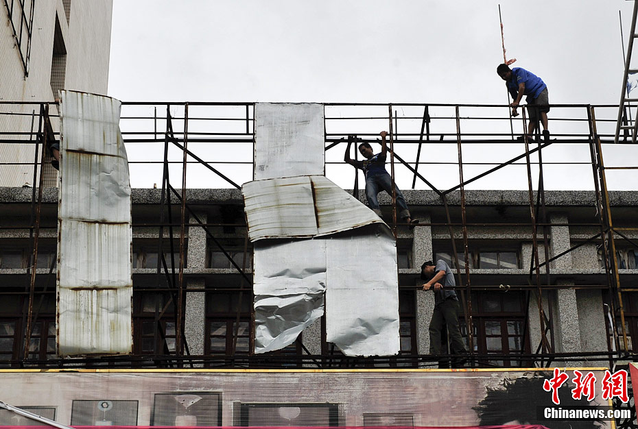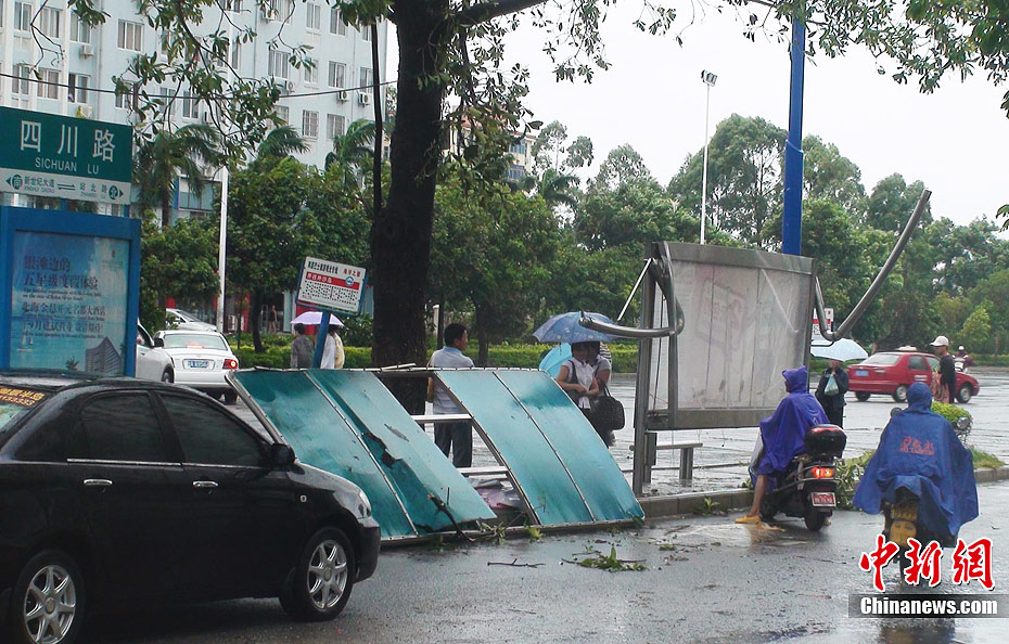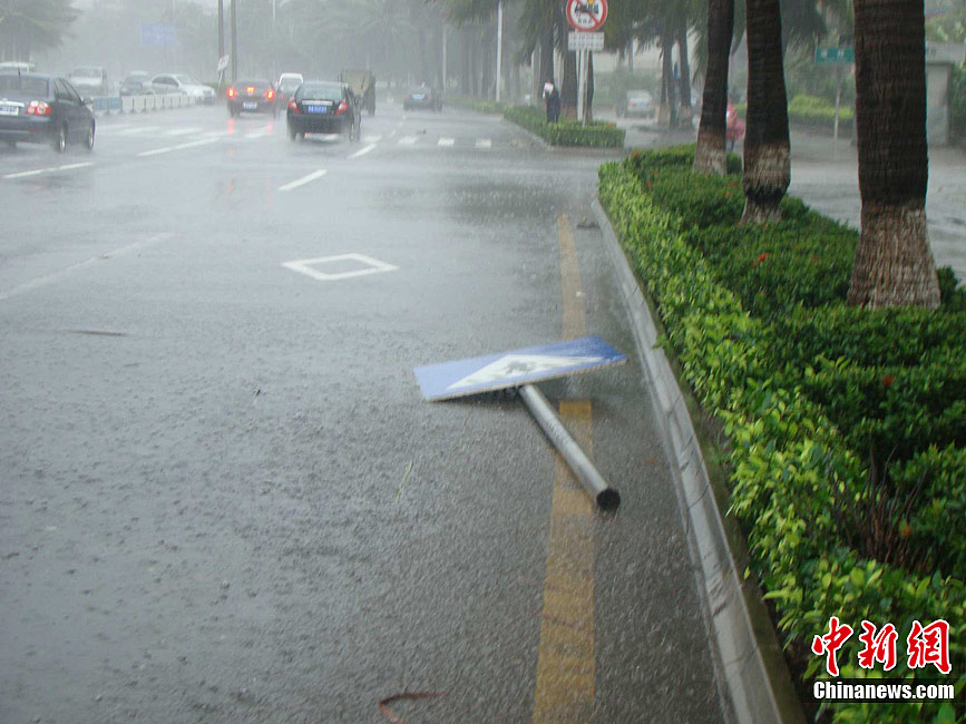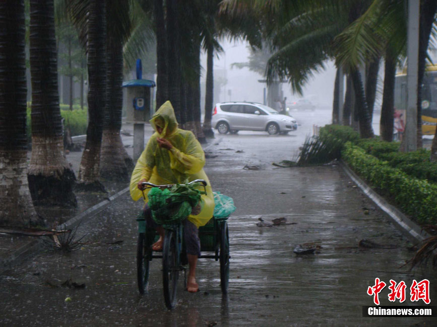 今年第17号强台风“纳沙”于28日14:30分登陆海南文昌翁田镇,中心位于北纬19.7度,东经111.1度,中心附近最大风力14级,最大风速42米/秒,7级风圈半径380公里,10级风圈半径140公里。海口市受其影响,市内掀起狂风下起暴雨,汽车报警器此起彼伏,路人撑伞难行,记者用镜头记录风势的猛烈。图为海南省会海口受台风“纳沙”肆虐狂风暴雨,行人匆匆。王子谦 摄