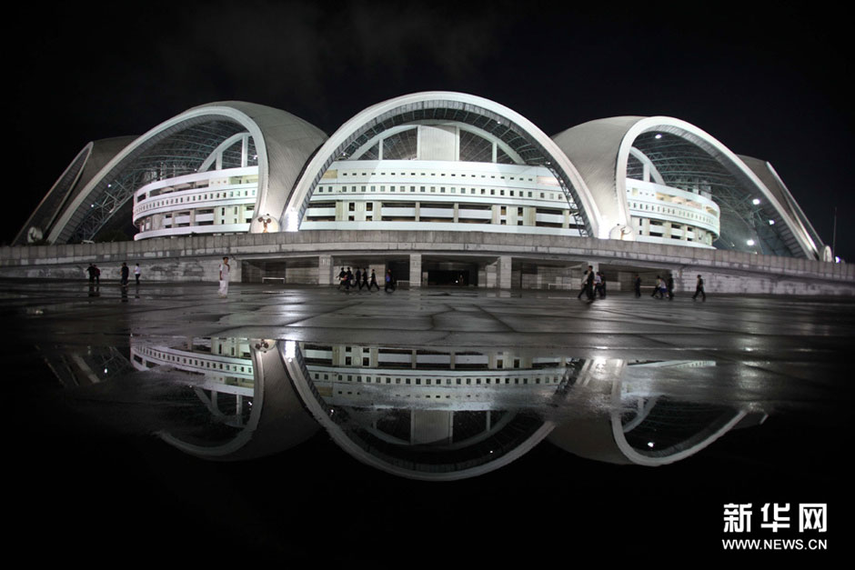 这是2010年8月13日在朝鲜首都平壤拍摄的尚未完工的柳京饭店。柳京饭店呈金字塔形,高330米。从1987年开始建设。新华社记者 刘宇 摄 图片来源:新华网