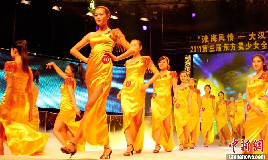 日前,由徐州广播电视台、《东方模特》杂志、江苏省电视艺术家协会主办的2011第三届东方美少女总决赛在江苏徐州举行,来自北京的选手宋乐获得冠军、赵婉婷(上海)获得亚军、荣海宏(兰州)获得季军。 中新社发 东方 摄