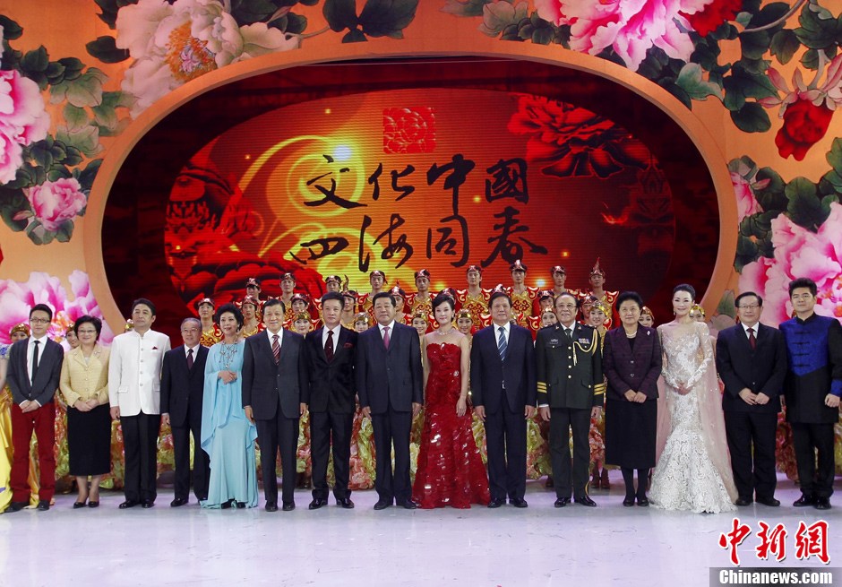 1月17日晚,在杨钰莹、毛宁和众人合唱的一曲《我们一起过年》声中,湖南卫视小年夜春晚圆满落幕。现场,赵本山、小沈阳、杨幂、刘恺威、杨丽萍、张杰、钟镇涛及女儿等人悉数亮相。图为杨钰莹与毛宁。中新网记者 金硕 摄