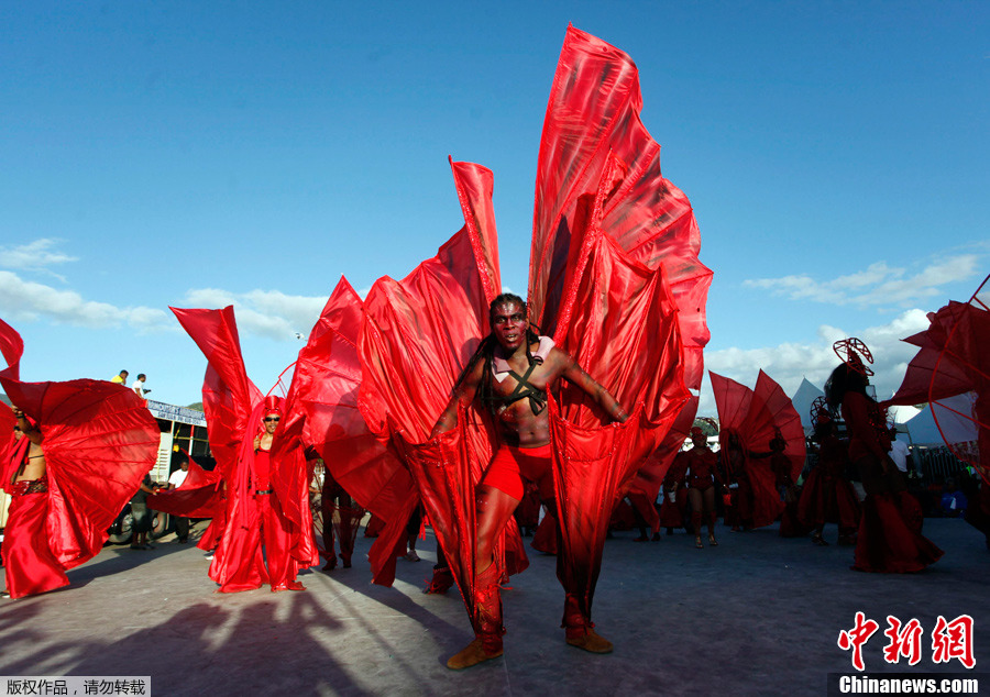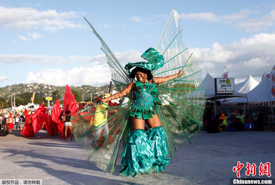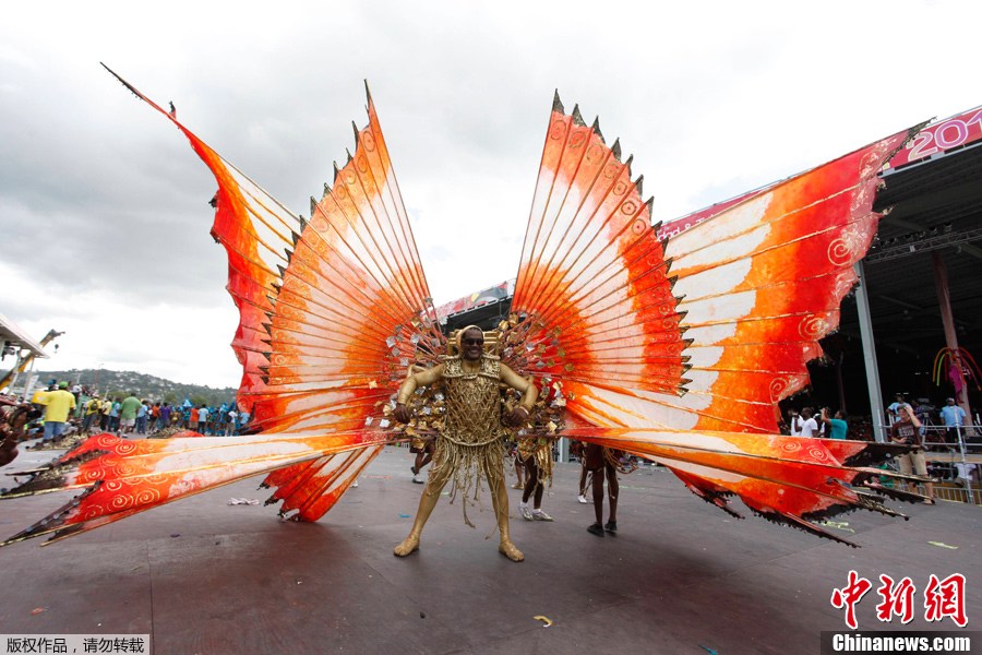 2月21日,特立尼达和多巴哥共和国首都西班牙港的狂欢节活动中,人们各式各样的“羽翼”别具特色,仿佛一场“羽翼”造型秀。据悉,特立尼达和多巴哥因盛产极乐鸟和蜂鸟,被誉为“蜂鸟之乡”。