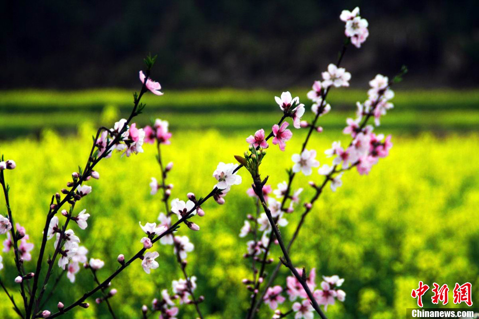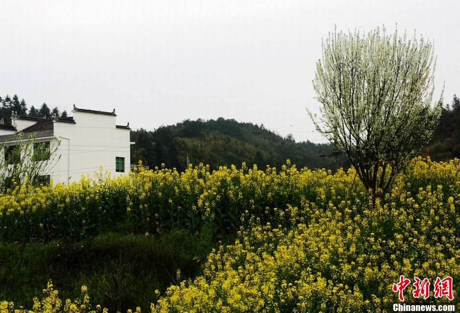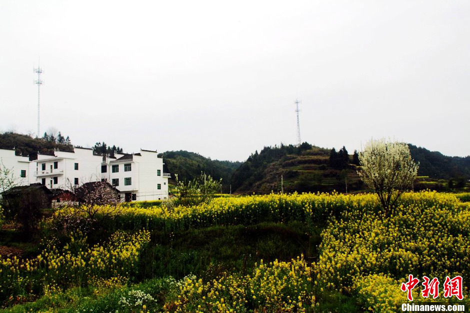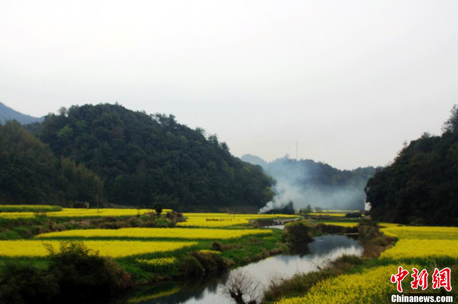 阳春三月,被誉为“中国最美的乡村”的江西婺源,怒放着金黄的油菜花,漫步于乡村的石板路,穿过溪河的石拱桥,油菜花盛开于徽式农舍间,重重叠叠的马头墙,漠漠水田,白墙黑瓦,河溪缓缓,云烟雾霭倒影其中,不远处炊烟袅袅升起,返璞归真的神韵尽在其中。图为游客在小竹排上拍风景照。戴向阳 摄