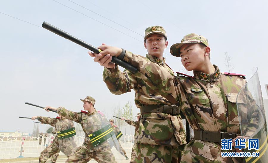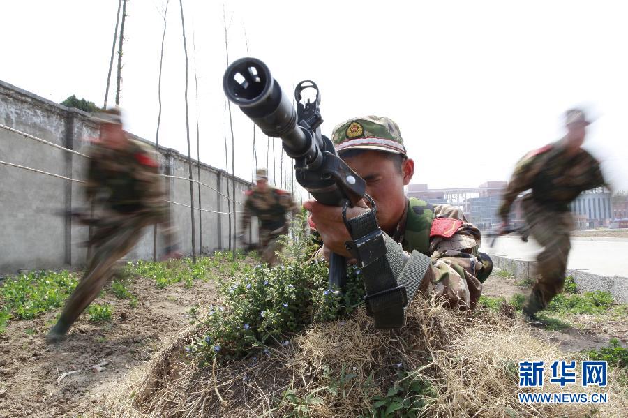 4月9日,在武警淮北支队濉溪县训练基地内,新下连队战士在进行岗哨换岗练习。近日,武警淮北支队组织本月初刚下连队的300余名新兵开展“百日练精兵”集中训练活动,帮助战士们尽快适应连队的训练生活,锻炼新战士的军事素质。新华社发(李博 摄)图片来源:新华网