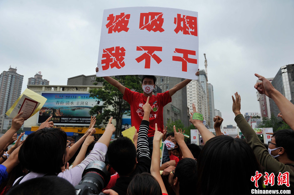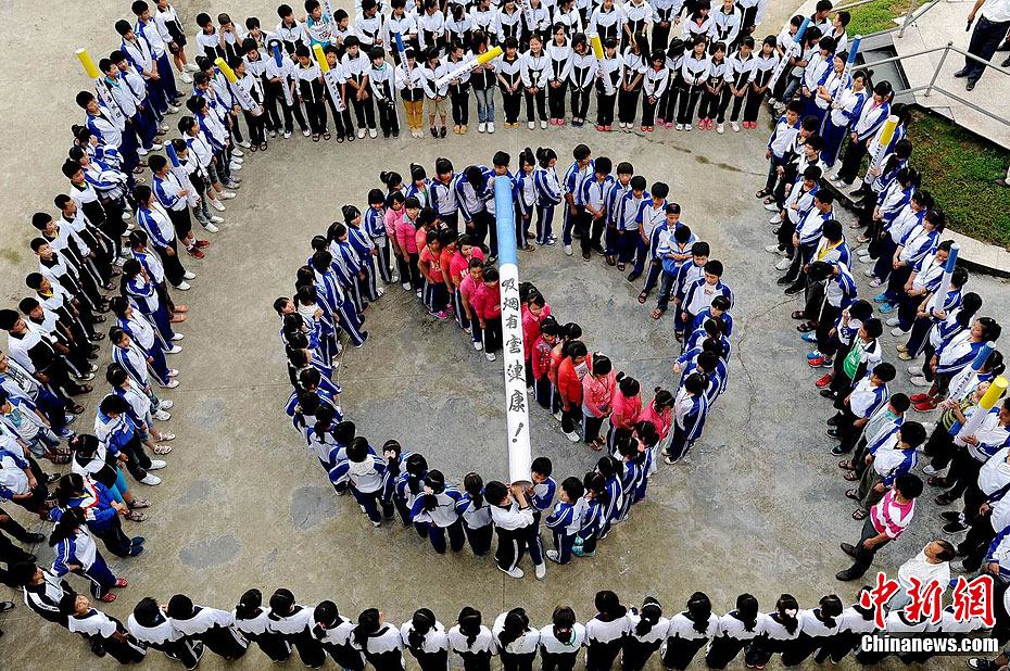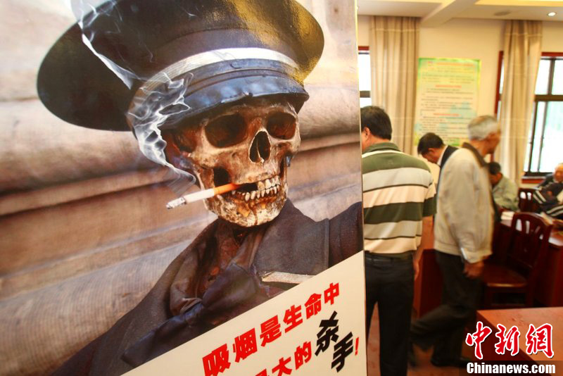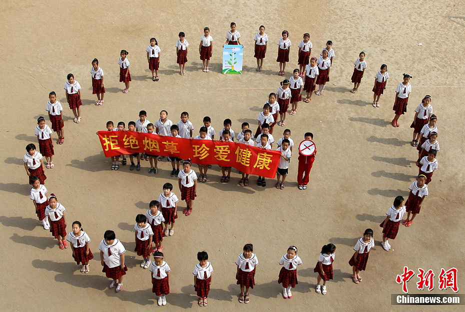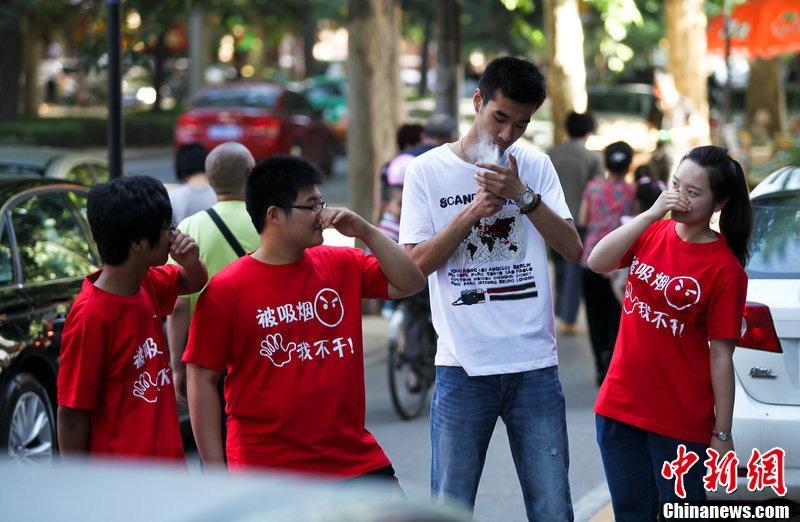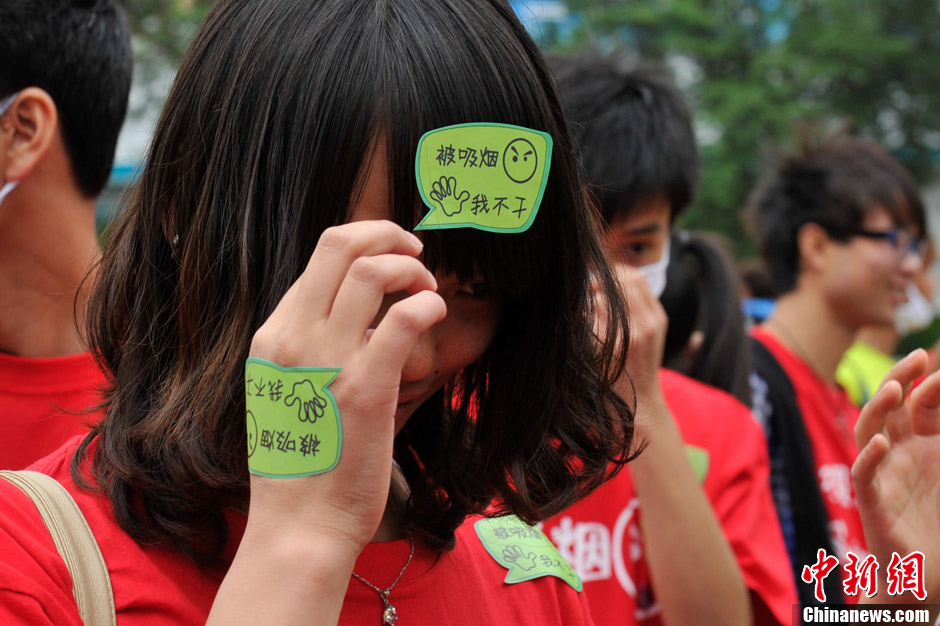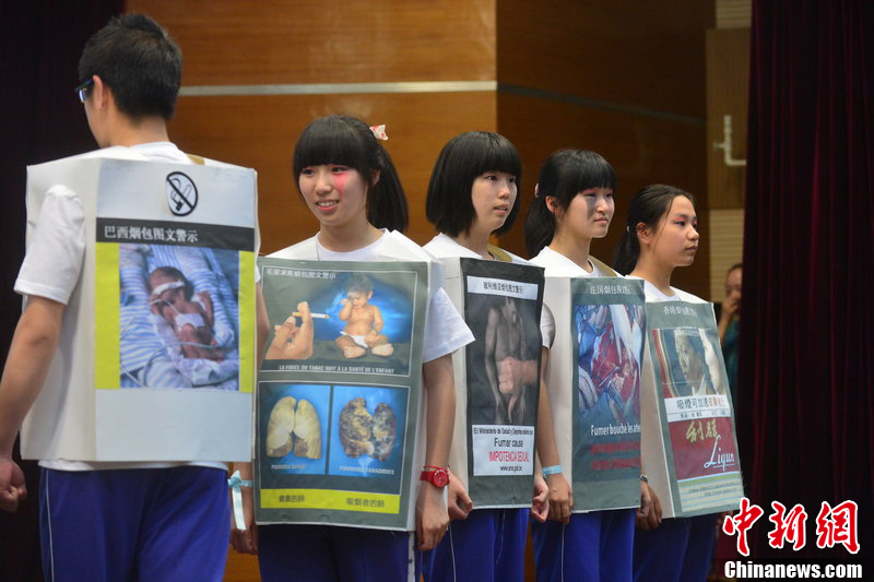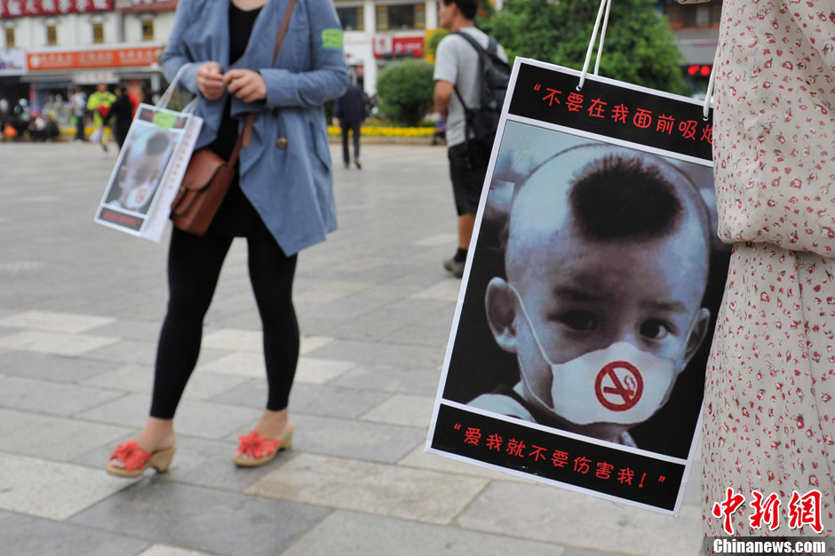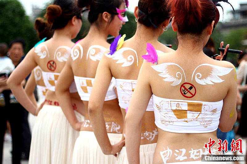 5月31日,西安,由曲江妇产医院护士组成的志愿者们,通过人体彩绘的方式宣传世界无烟日,倡导“孕妇在,不吸烟。”贺桐 摄 图片来源:CFP视觉中国