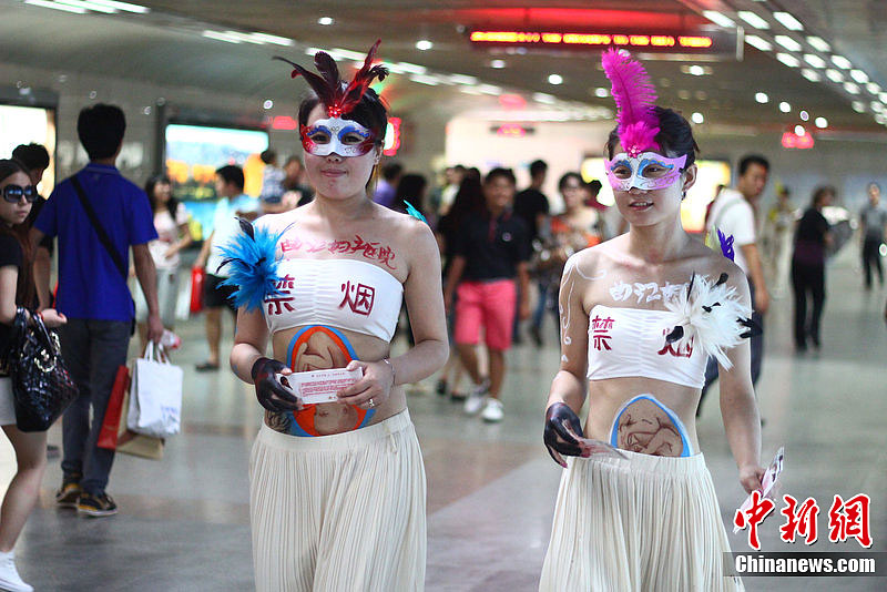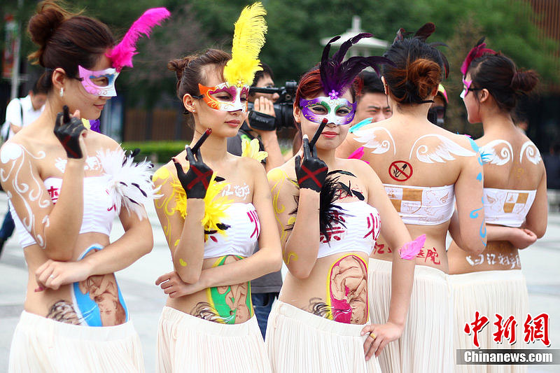 西安护士人体彩绘倡导“孕妇在 不吸烟”