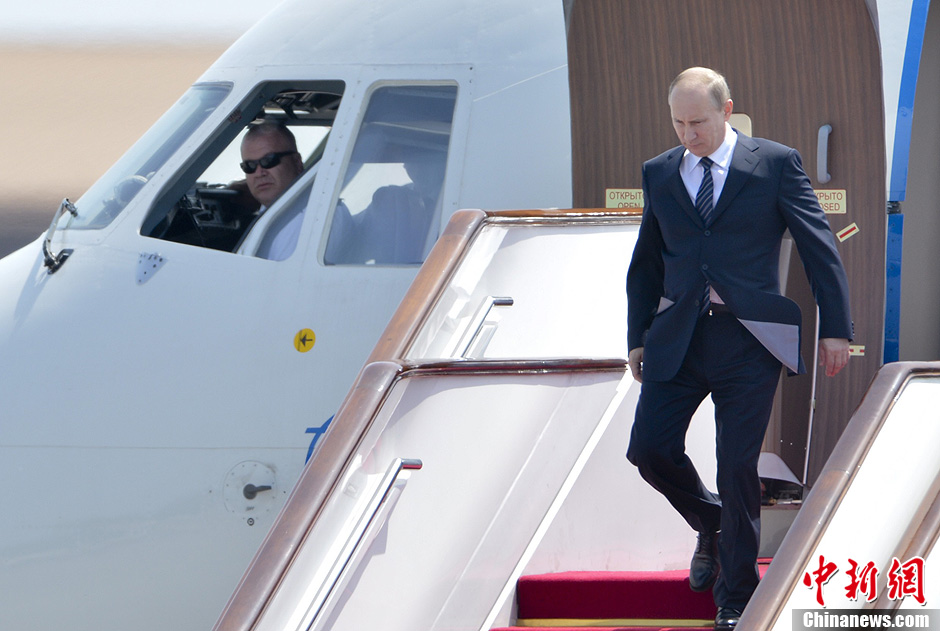 应国家主席胡锦涛邀请,俄罗斯总统普京6月5日上午抵达北京,开始对中国进行国事访问,并将出席6日至7日举行的上海合作组织成员国元首理事会第十二次会议。中新社发 廖攀 摄