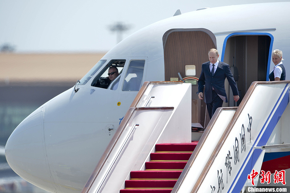 应国家主席胡锦涛邀请,俄罗斯总统普京6月5日上午抵达北京,开始对中国进行国事访问,并将出席6日至7日举行的上海合作组织成员国元首理事会第十二次会议。中新社发 廖攀 摄