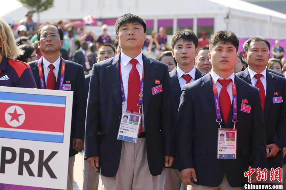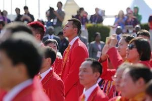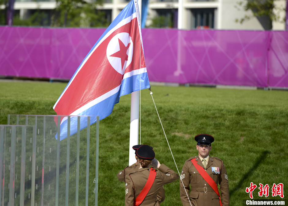 中国奥运代表团在伦敦奥运村举行升旗仪式