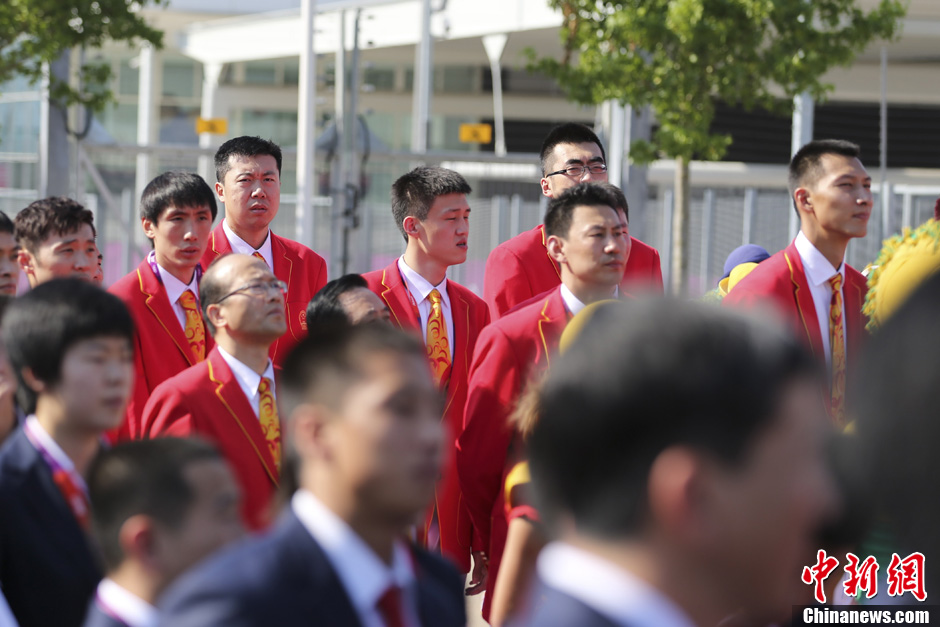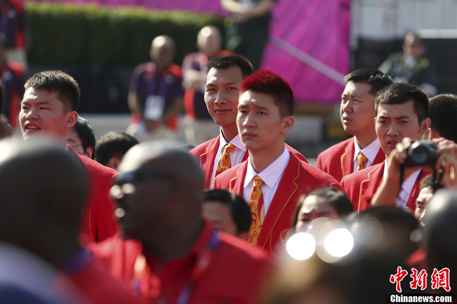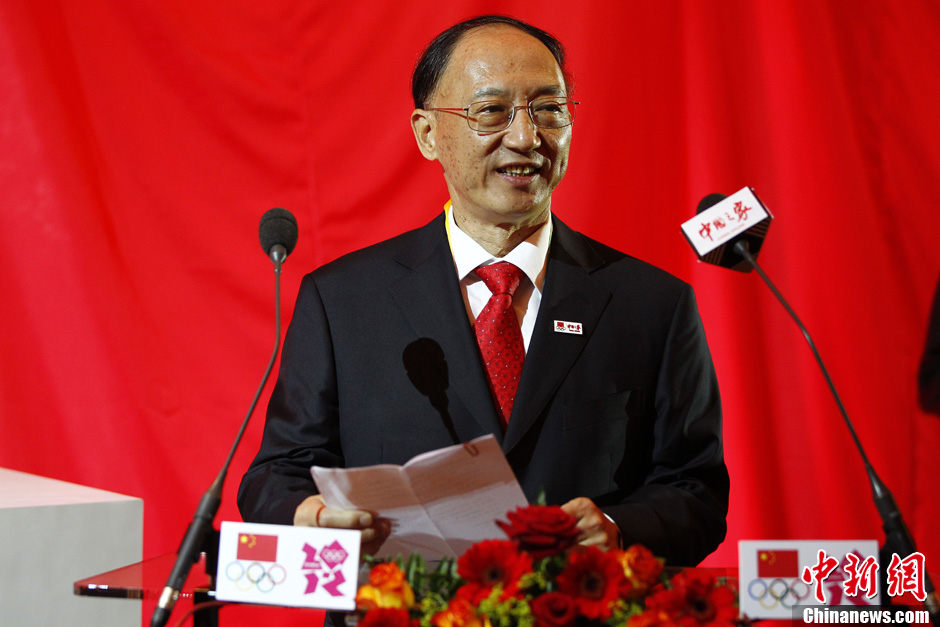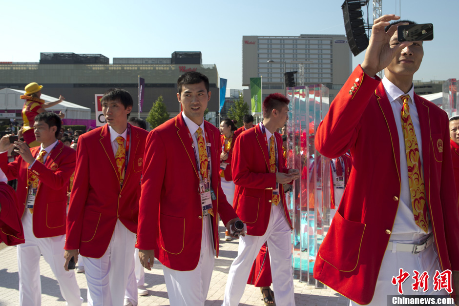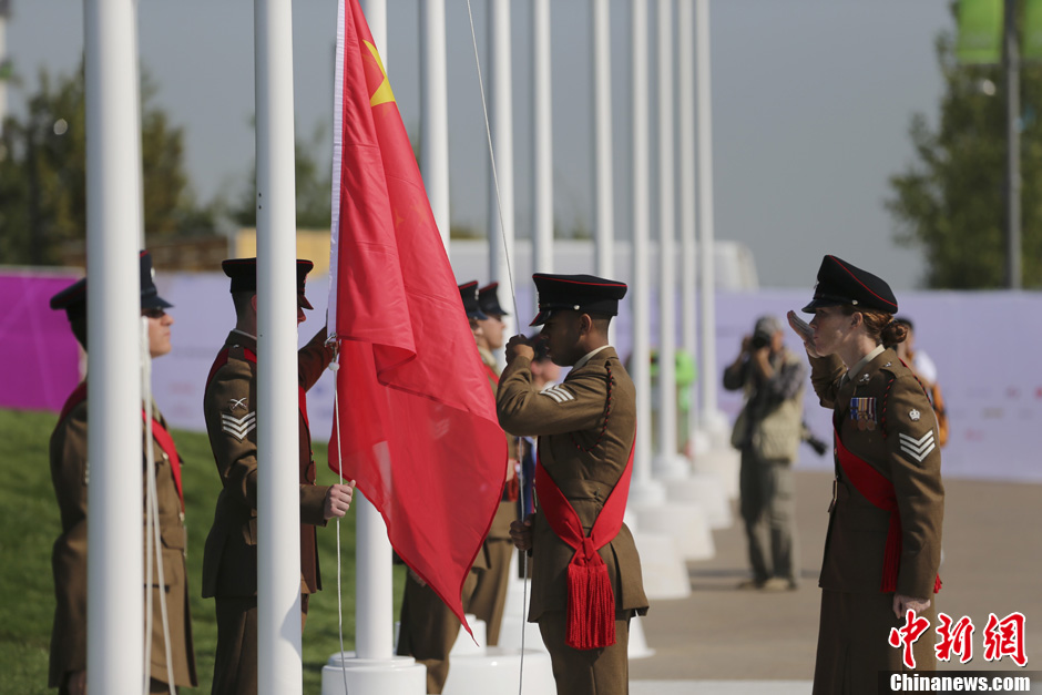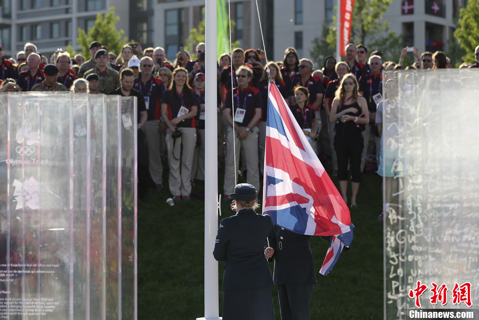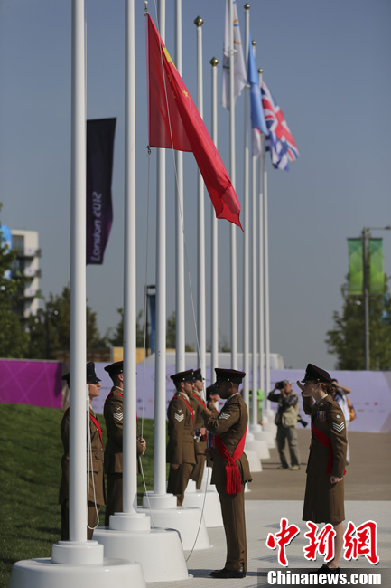 当地时间7月25日,中国奥运代表团在伦敦奥运村举行升旗仪式。记者 盛佳鹏 摄