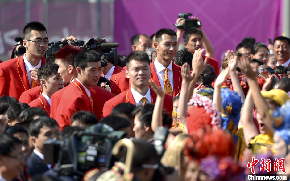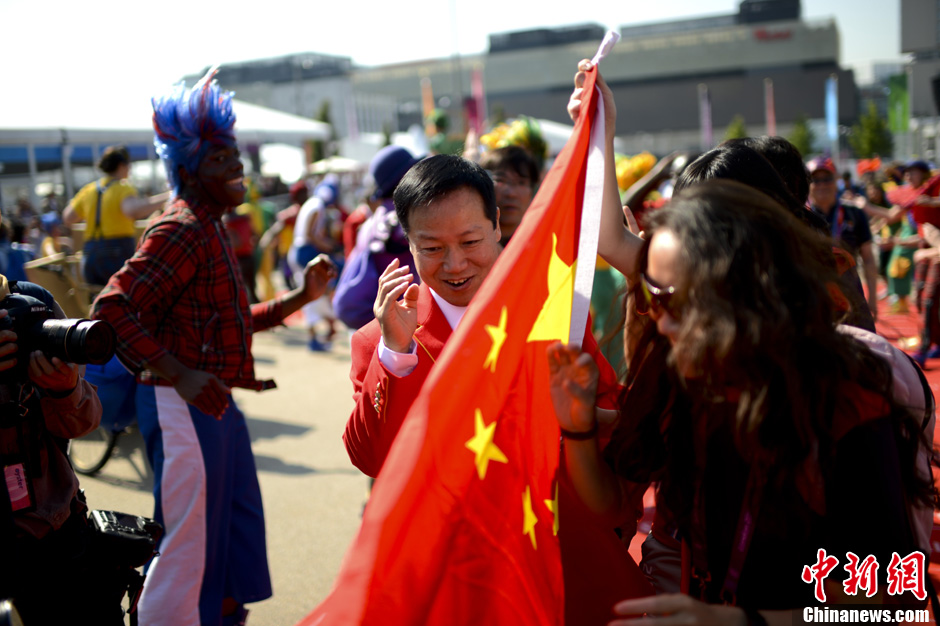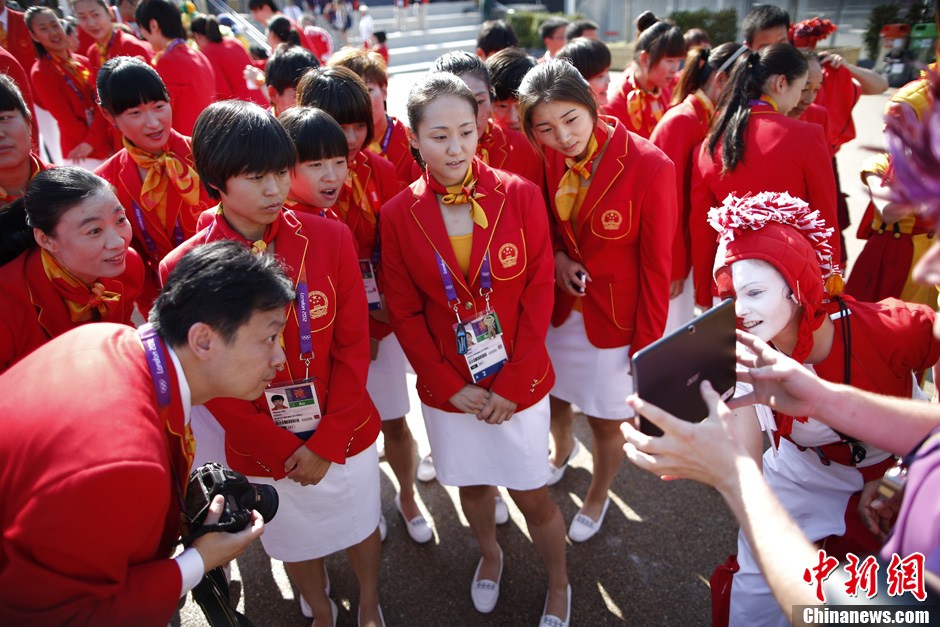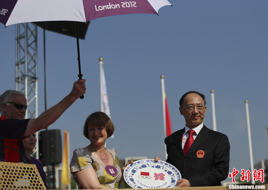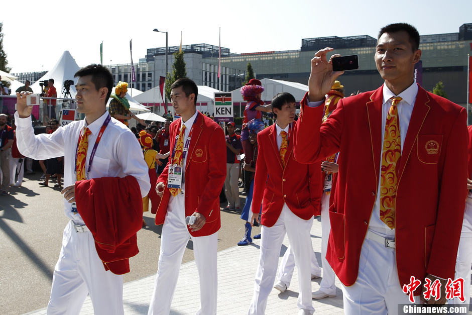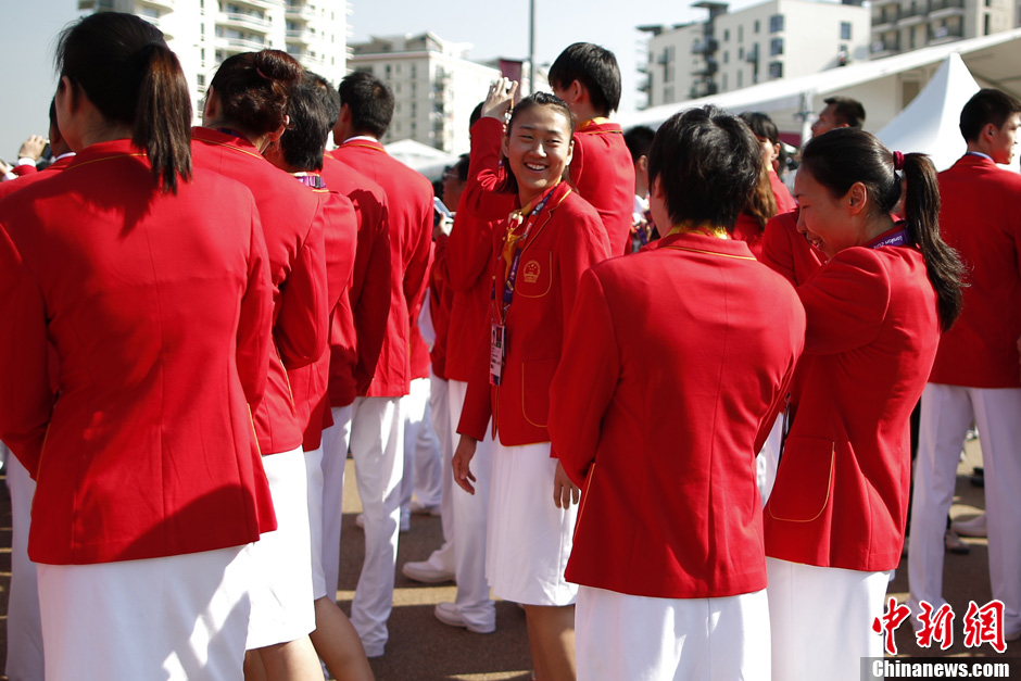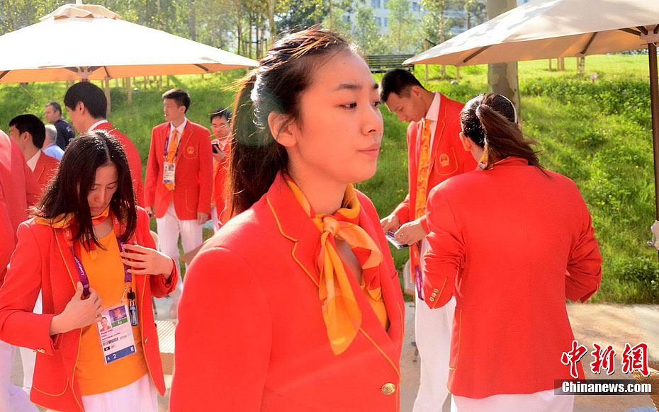 当地时间7月25日,中国奥运代表团在伦敦奥运村举行升旗仪式。记者 盛佳鹏 摄