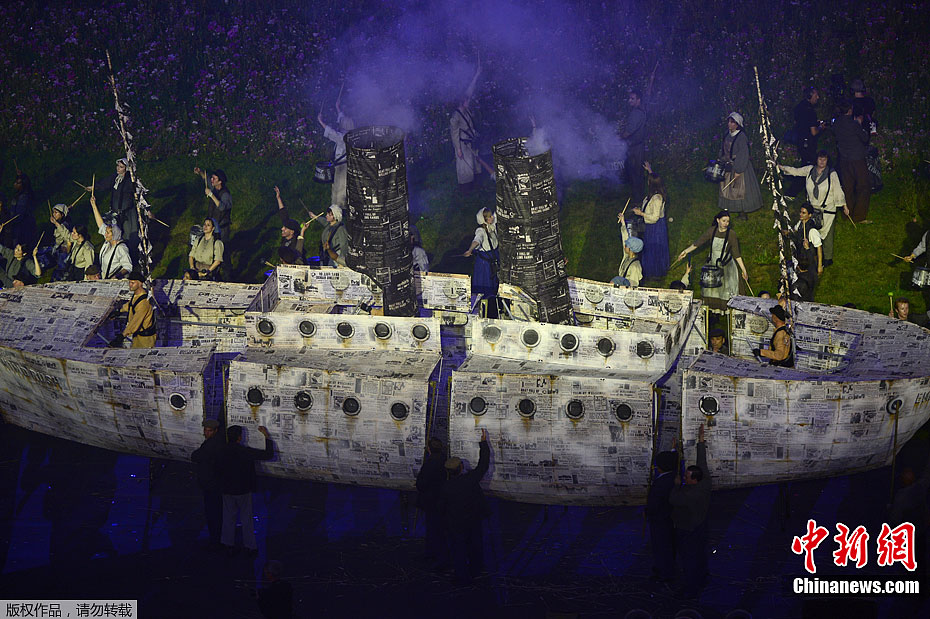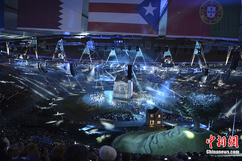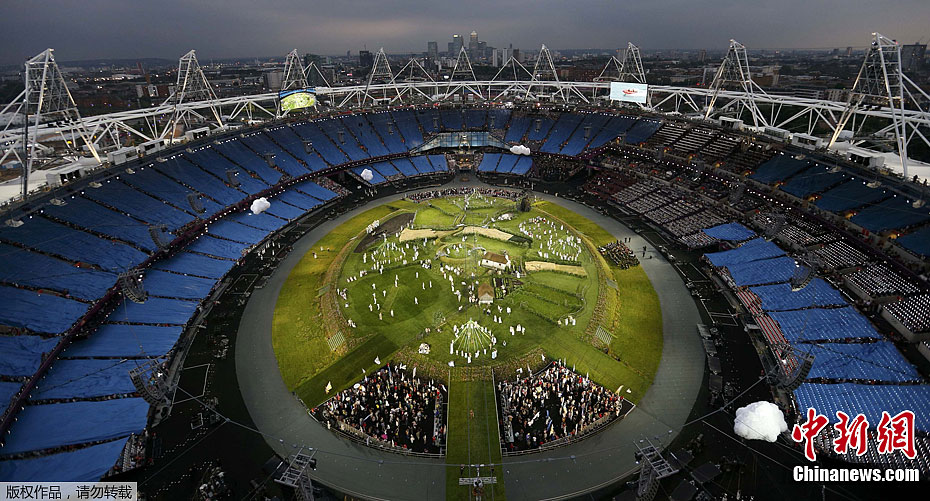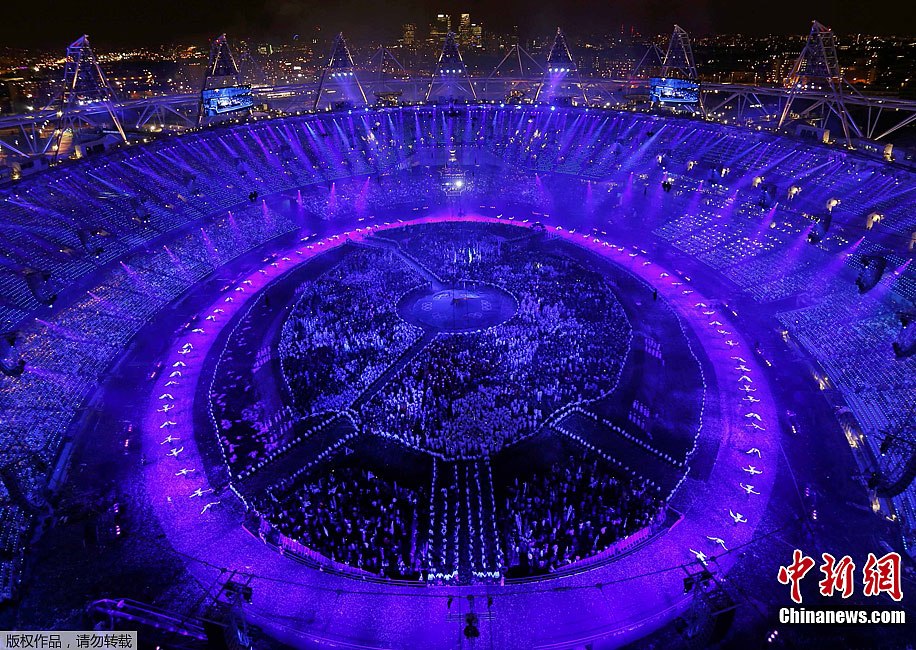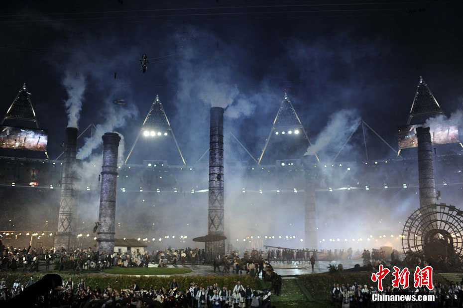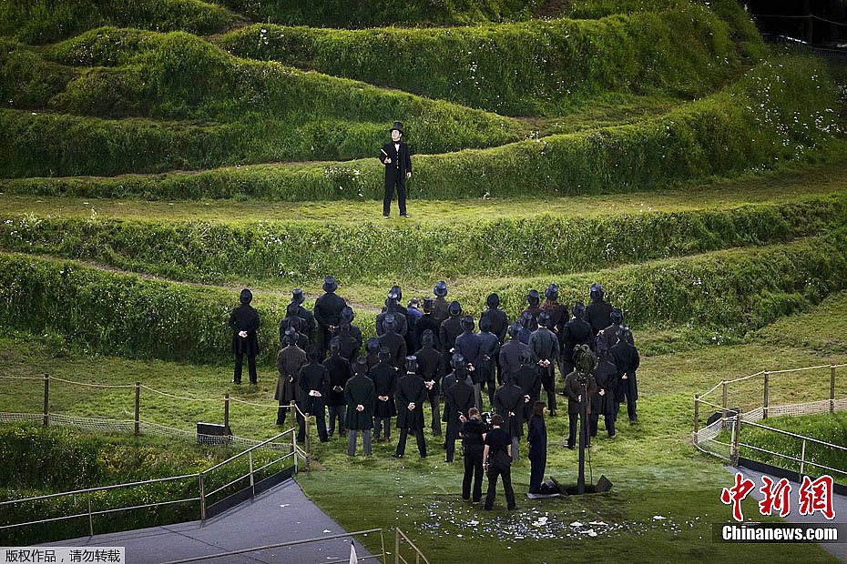 当地时间7月27日,2012年伦敦奥运会,开幕式隆重举行。图为现场表演。