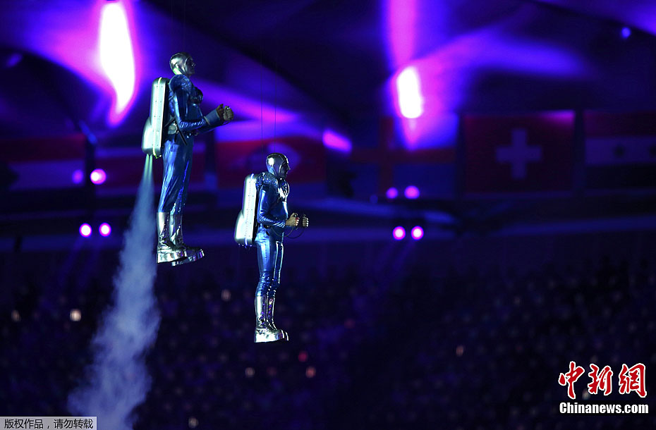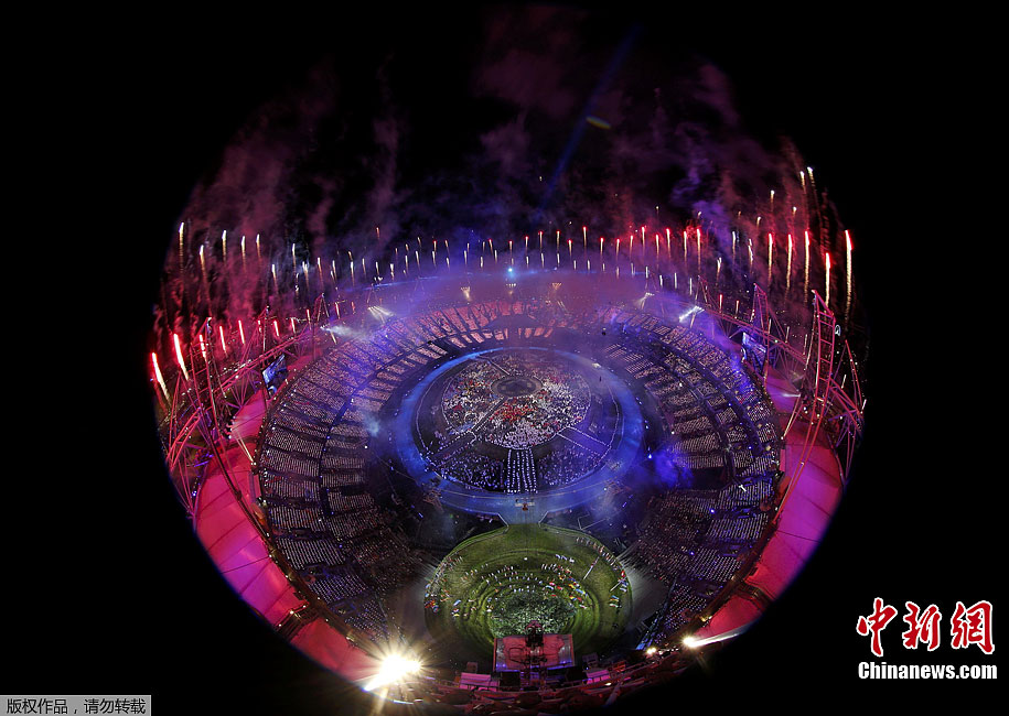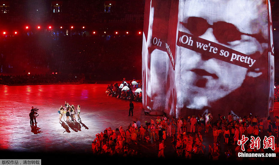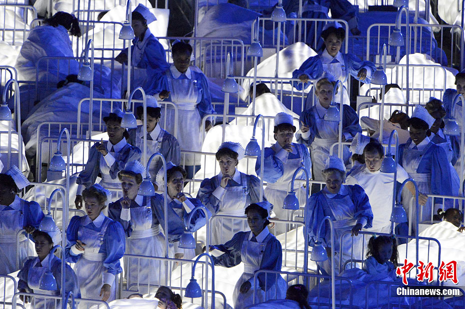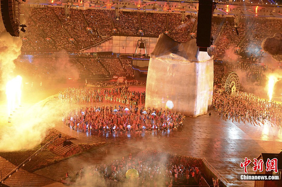 当地时间7月27日,2012年伦敦奥运会,开幕式隆重举行。图为现场表演。